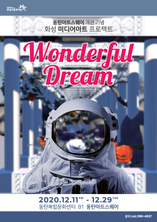동탄아트스퀘어 개관기념 화성미디어아트프로젝트 Wonderful Dream 기간:2020.12.11FRI-12.29TUE 장소:동탄복합문화센터B1 동탄아트스퀘어 문의:(031)290-4637 주최:화성시문화재단