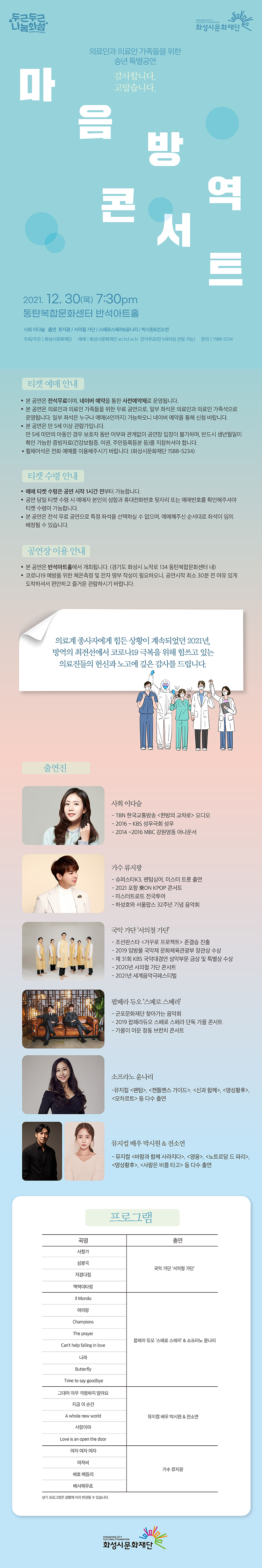 【[공 연]기획공연】의료인과 의료인 가족들을 위한 송년특별공연 <마음방역 콘서트>
