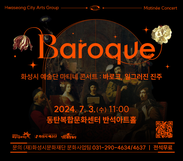 1. 2024 화성시 예술단 마티네 콘서트: 바로크, 일그러진 진주,장소:,기간:2024년 7월 3일~2024년 7월 3일