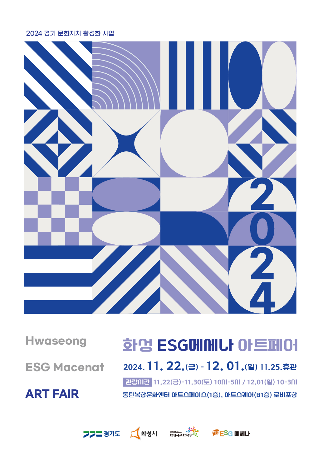【전 시】화성 ESG메세나 아트페어 장소 동탄아트스페이스, 동탄아트스퀘어 기간 2024년 11월 22일 ~ 2024년 12월 1일 요일 화, 수, 목, 금, 토, 일 공연시간 10시 ~ 17시 티켓정보 무료 관람등급 전체 문의 031-290-4614 . 241023메세나아트페어(웹초대장)01.jpg [ Size : 498.78KB, Down : 1,636 ] 미리보기 다운로드 241023메세나아트페어(웹초대장)01 목록보기