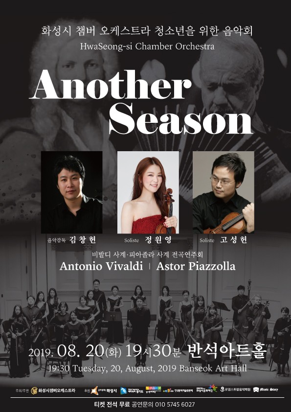 【[공 연]대관공연】Another, Season 장소 반석아트홀 기간 2019년 8월 20일 ~ 2019년 8월 20일 공연시간 19:30 티켓정보 전석무료 관람등급 문의 화성시스트링챔버오케스트라 010.5745.6027 * 티켓 전석 무료이며, 예약없이 6시 부터 선착순 배부합니다. 1563948160645.jpg [ Size : 116.46KB, Down : 372 ] 미리보기 다운로드 사본 -1565773134309.jpg [ Size : 203.17KB, Down : 150 ] 미리보기 다운로드 사본 -1565773134309.jpg [ Size : 203.17KB, Down : 130 ] 미리보기 다운로드 목록보기