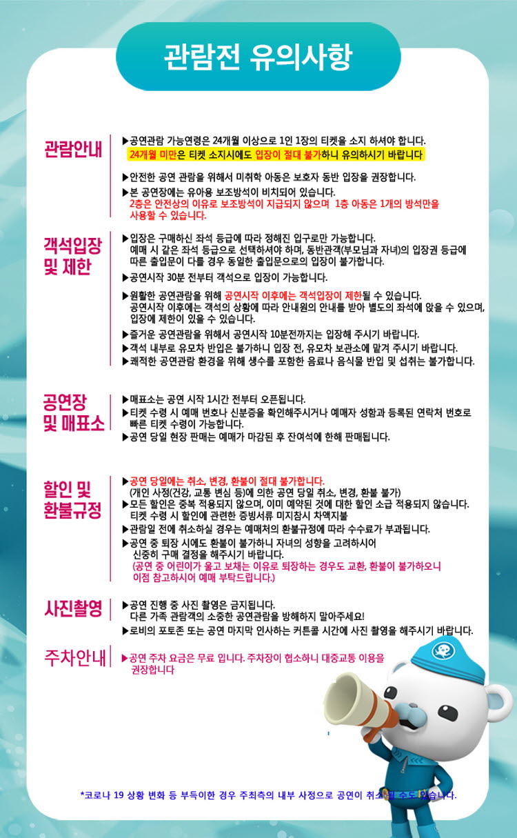 -본 공연은 24개월이상 입장 가능한 공연으로 24개월미만 아동은 티켓이 있어도 입장할 수