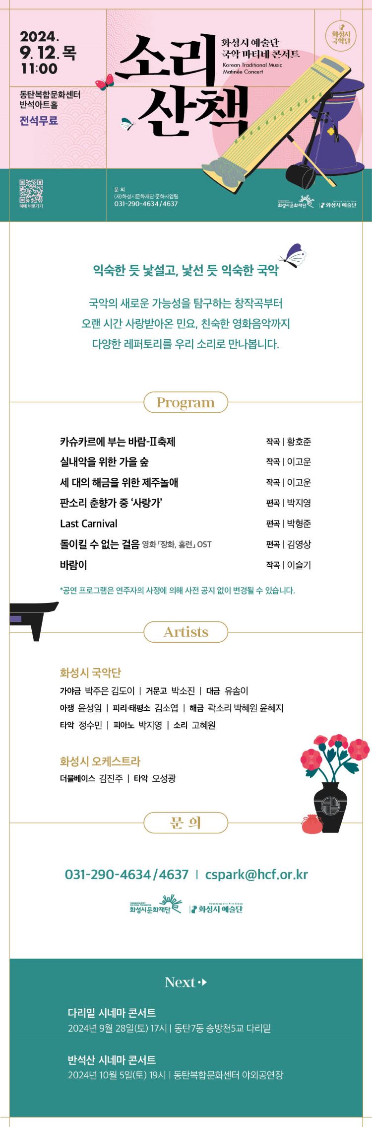 【[공 연]기획공연】2024 화성시 예술단 국악 마티네 콘서트: 소리산책