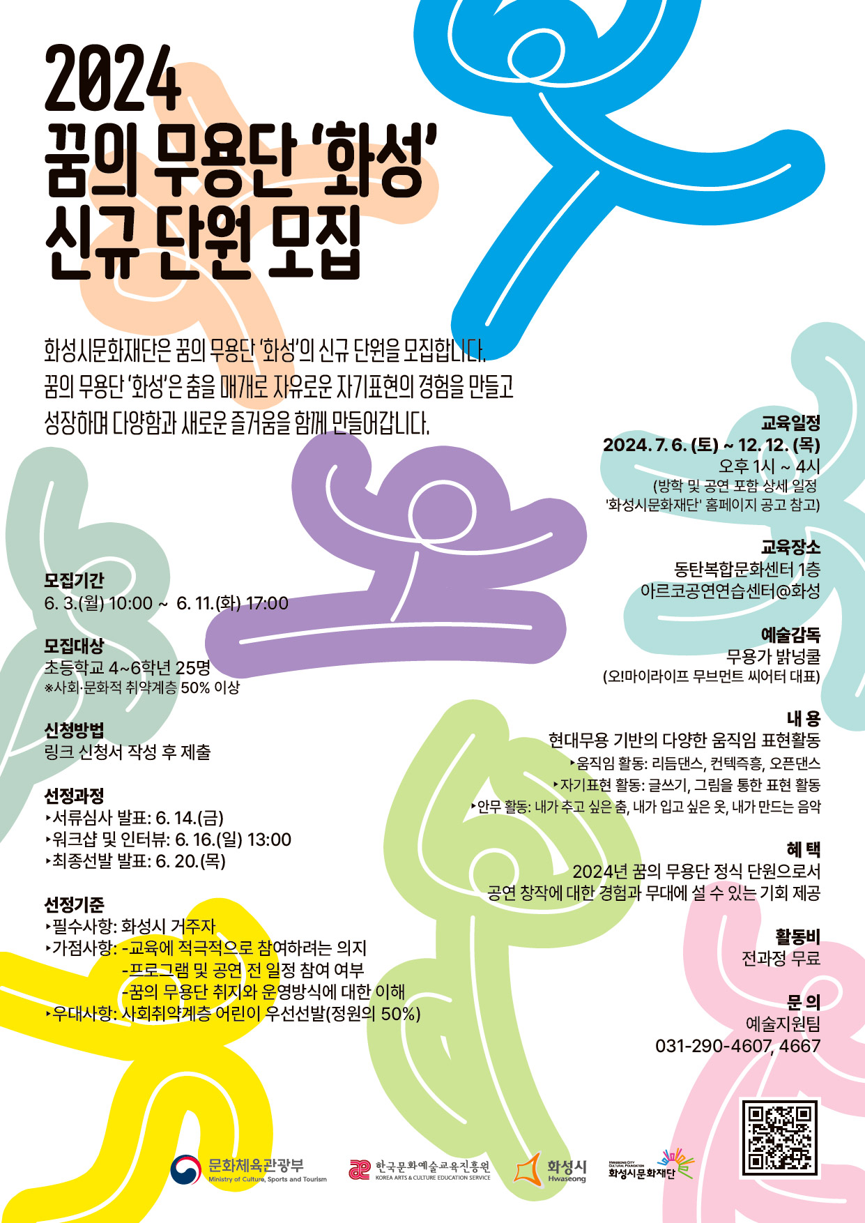 2024 꿈의 무용단 '화성' 신규 단원 모집 작성자 관리자 작성일 2024년 5월 28일 14시 48분 42초 조회 1,352 꿈의 무용단 '화성' 단원 모집 포스터(QR).jpg [ Size : 471.69KB, Down : 1,218 ] 미리보기 다운로드 꿈의 무용단 '화성' 단원 모집 포스터(QR) 참여신청 링크 : https://forms.gle/Cyz1qfBPpwQEY2419 목록보기