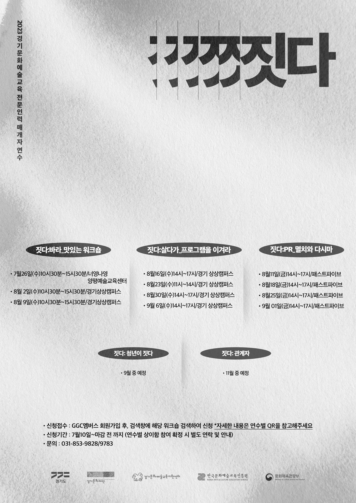 실질적인 역량강화를 위한 2023 경기문화예술교육 전문인력 매개자 연수 <짓다> 연수를 아래와 같이 진행하고