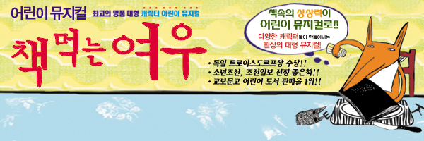 【[공 연]대관공연】어린이 베스트셀러 뮤지컬 <책먹는여우> 장소 반석아트홀 기간 2019년 5월 22일 ~ 2019년 5월 23일 공연시간 10시 40분 티켓정보 전석 35,000원(단체관람시 할인가능) 관람등급 전체관람가 문의 010.2284.4842 (극단 가람) - 책여우-가로배너.jpg [ Size : 145.46KB, Down : 314 ] 미리보기 다운로드 책먹는여우포스터.JPG [ Size : 890.39KB, Down : 1,253 ] 미리보기 다운로드 여우배너.jpg [ Size : 2.06MB, Down : 348 ] 미리보기 다운로드 목록보기