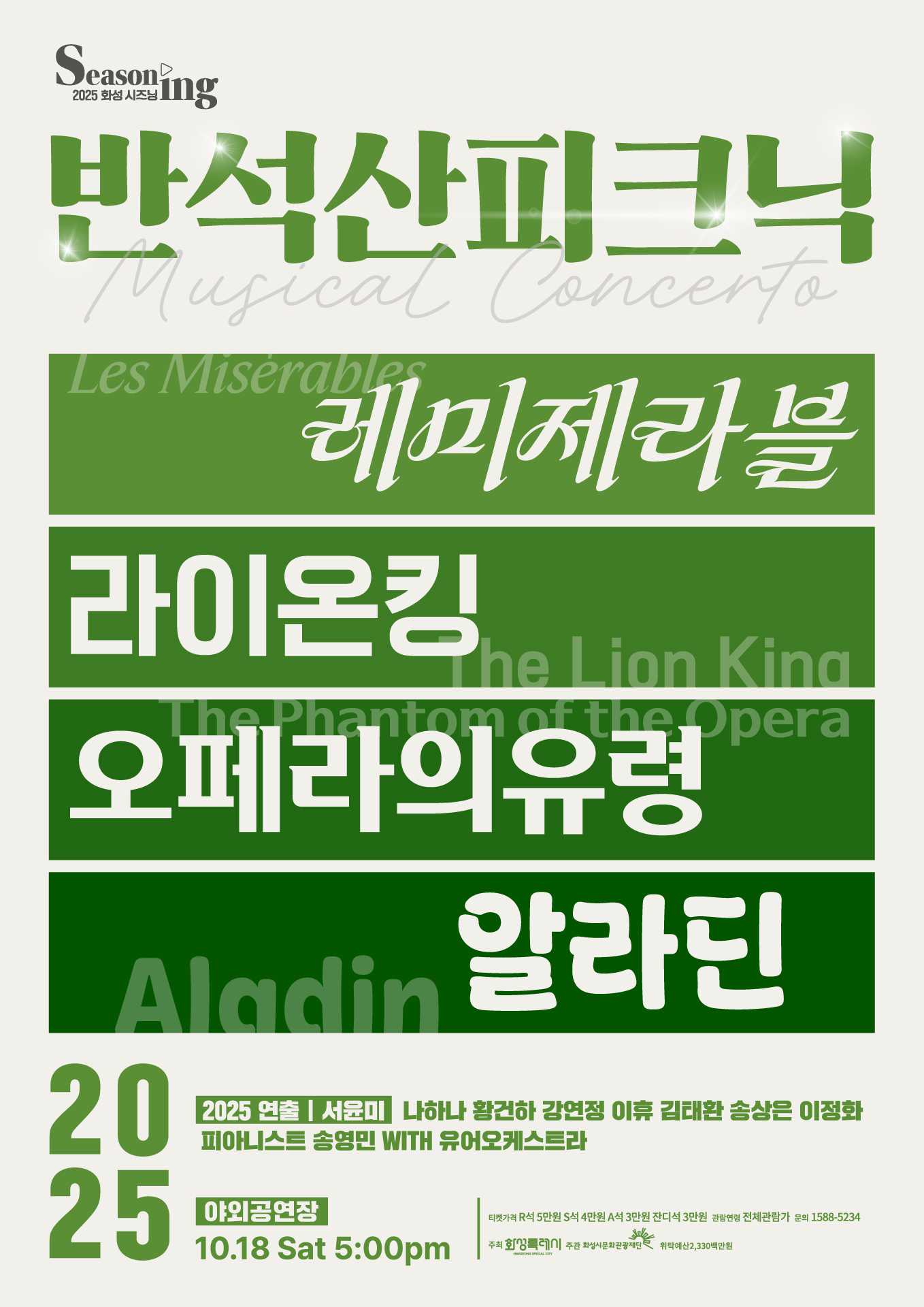 - R석 5만원, S석 4만원, A석 3만원, 잔디석 3만원
