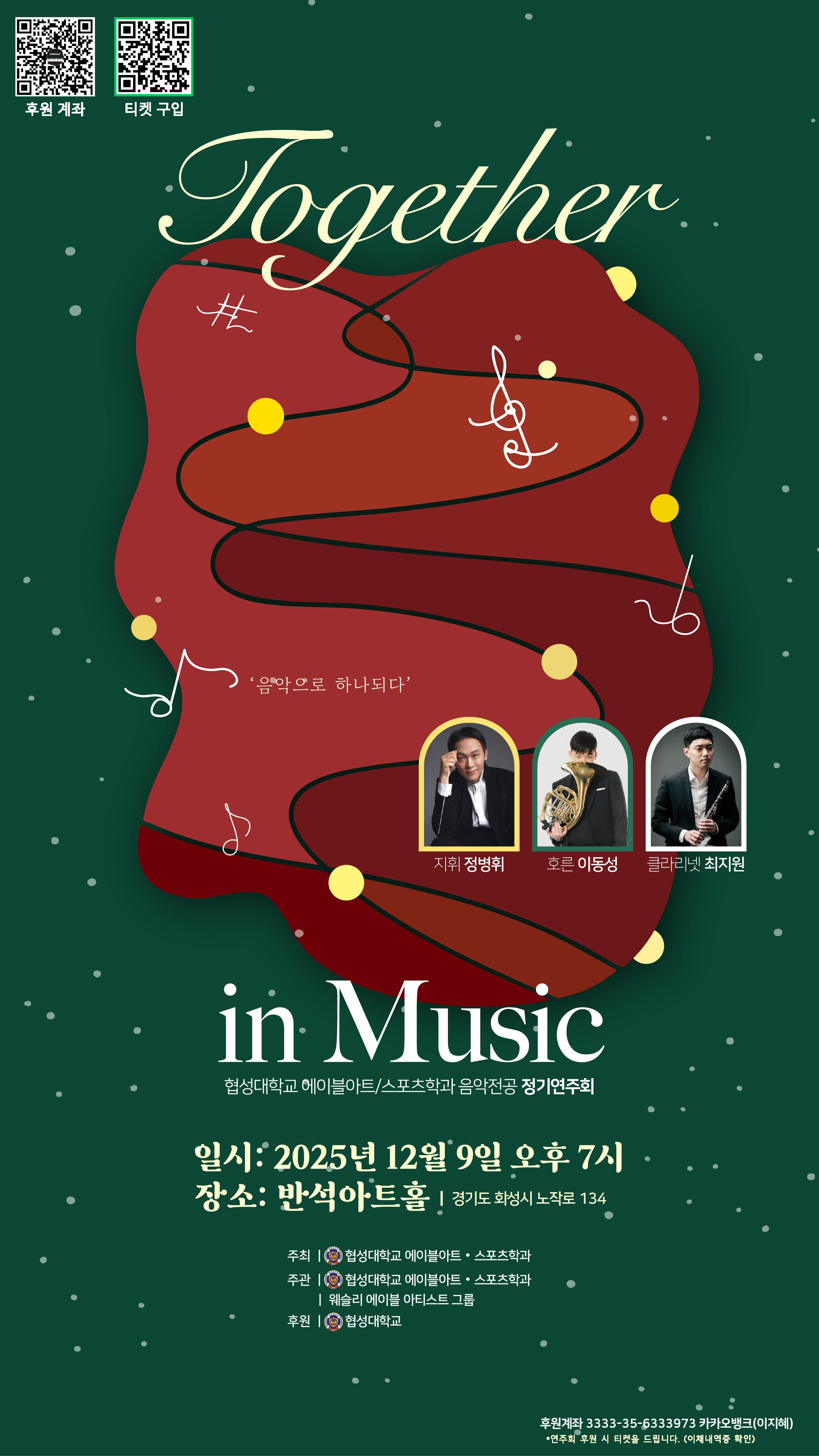 【[공 연]대관공연】협성대학교 에이블아트·스포츠학과 정기연주회 Together in Music: 음악으로 하나되다