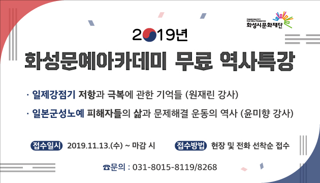 2019년 화성문예아카데미 무료 역사특강 안내