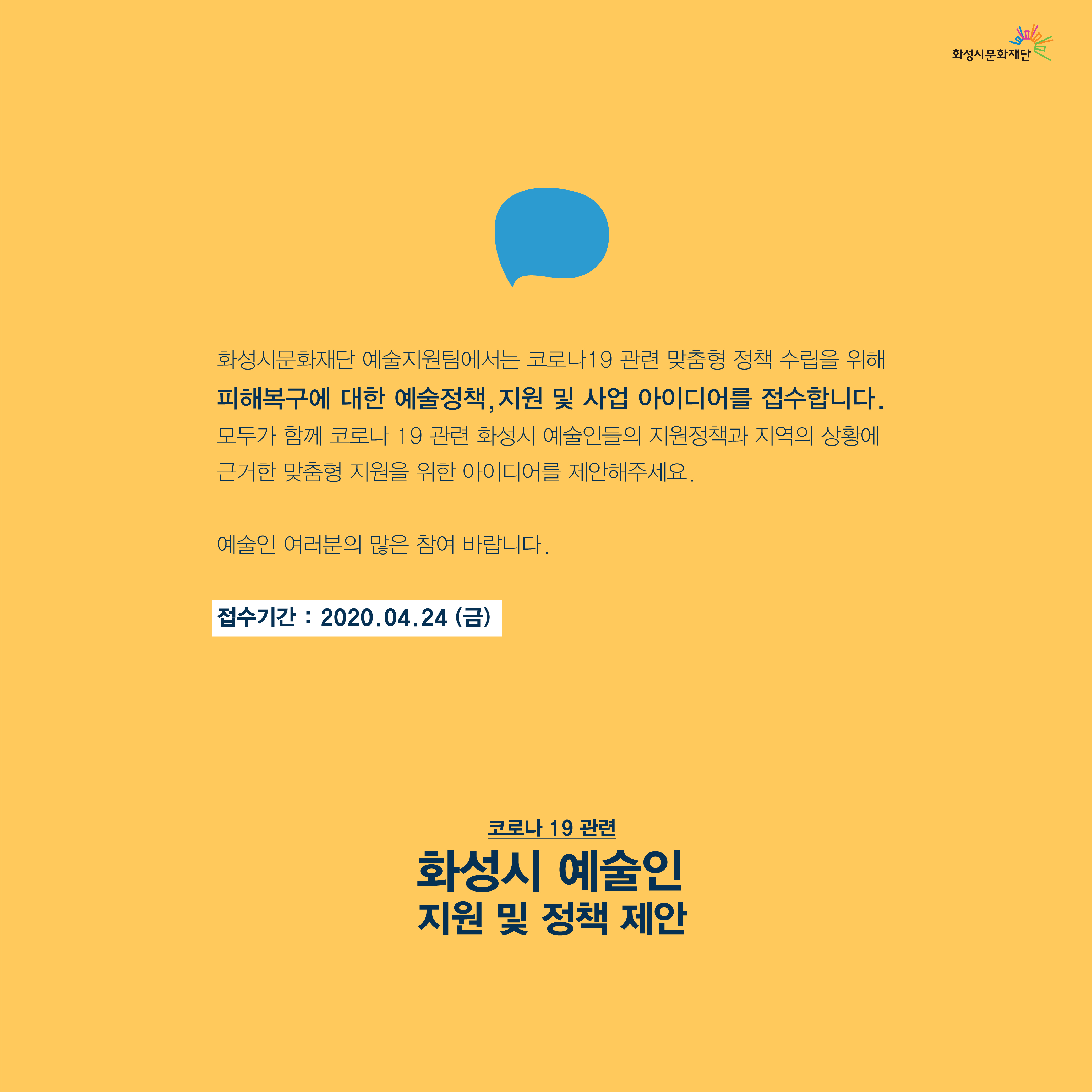 코로나19 관련 화성시 예술인 지원 및 정책 아이디어를 제안해주세요!