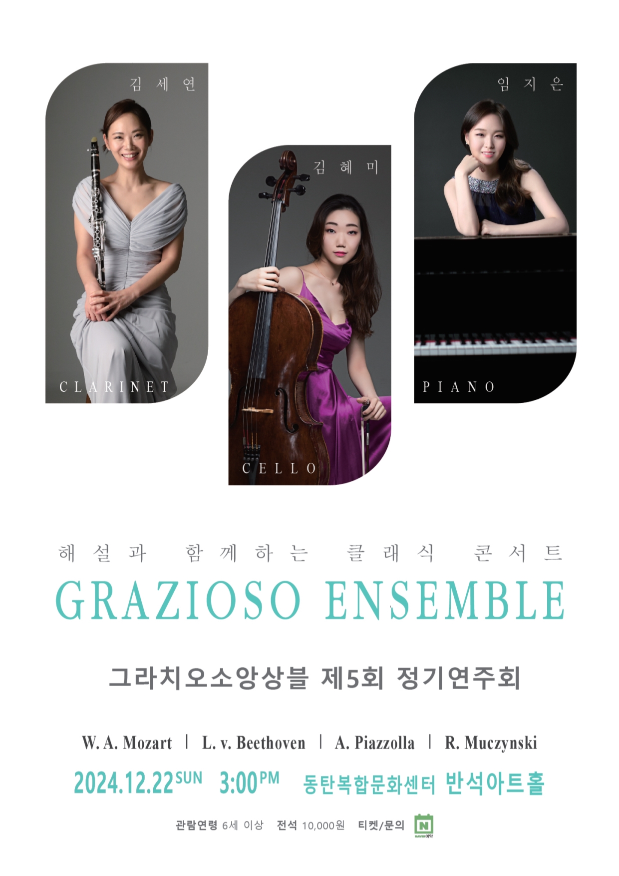 1. 해설과 함께하는 클래식 콘서트, 그라치오소 앙상블 제5회 정기연주회,장소:동탄복합문화센터 반석아트홀,기간:2024년 12월 22일~2024년 12월 22일