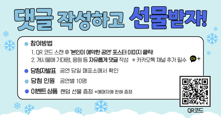 >>댓글이벤트 참여 바로가기: http://pf.kakao.com/_Mqxixhxl/97346935 (예매자에 한해 참여 가능)