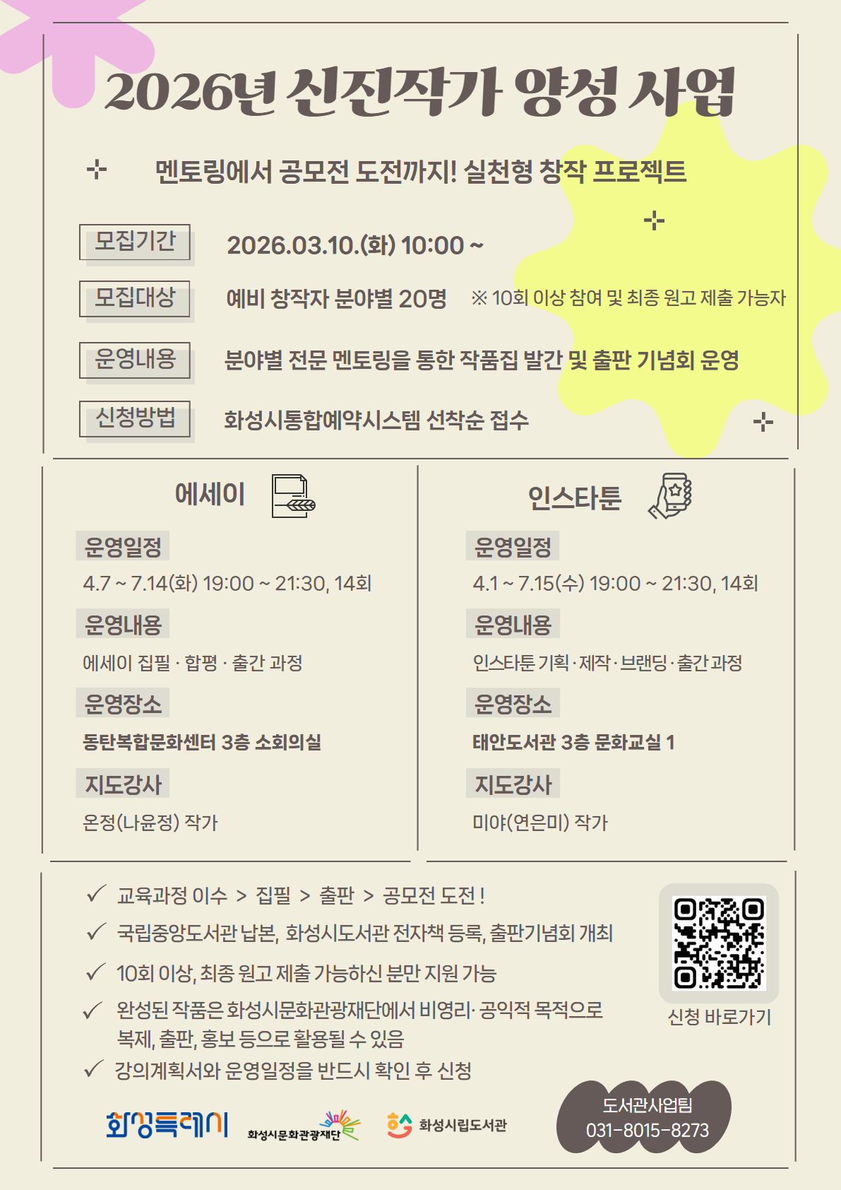 【[기 타] 행사】2026년 신진 작가 양성 사업(에세이, 인스타툰) 운영