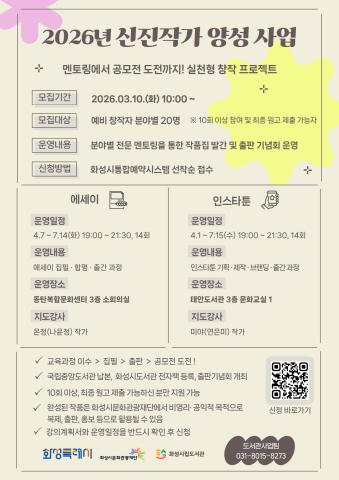 [기 타] 행사 2026년 신진 작가 양성 사업(에세이, 인스타툰) 운영 |