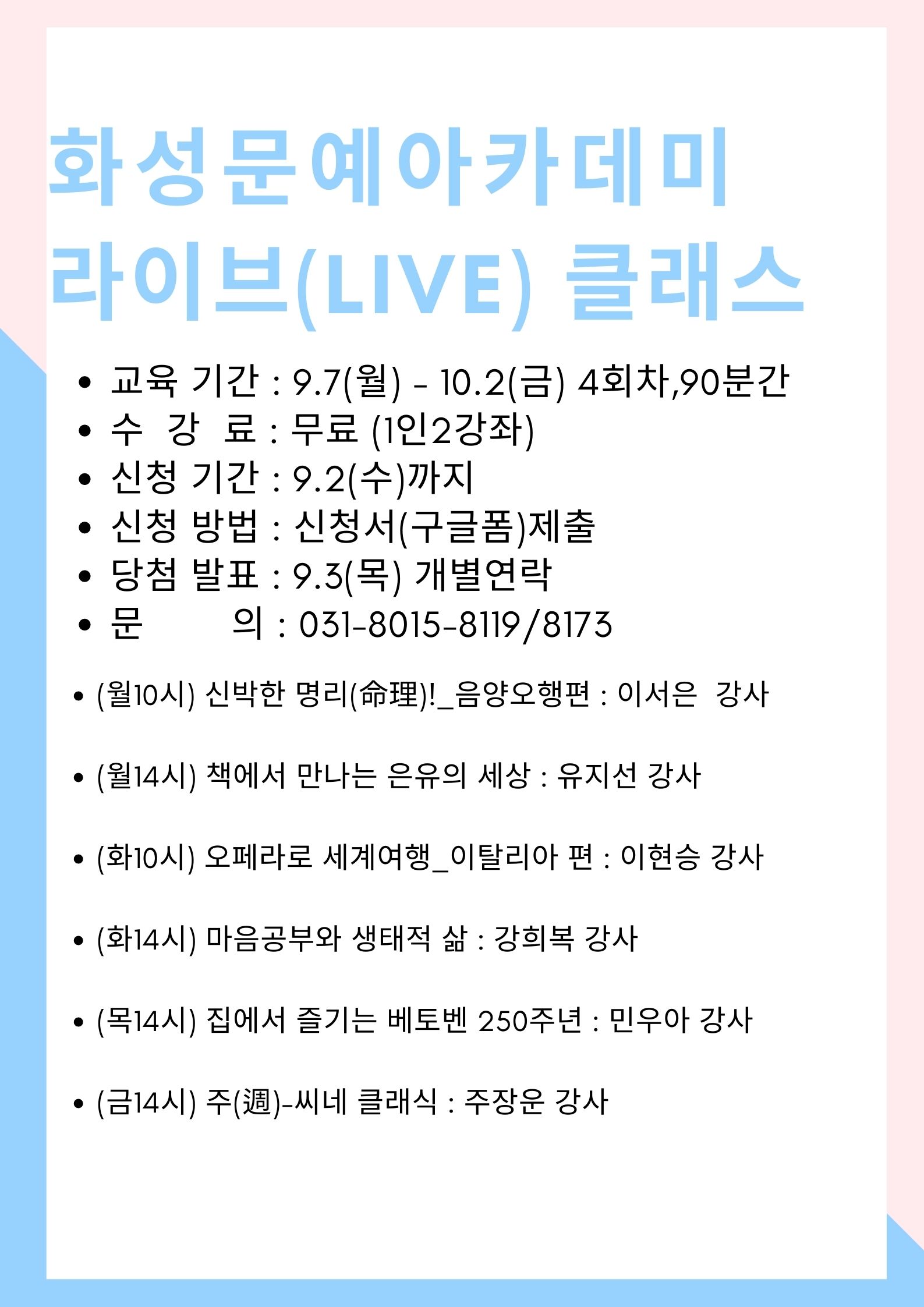 [화성문예아카데미]온라인으로 돌아온 화성문예아카데미 라이브(LIVE) 클래스