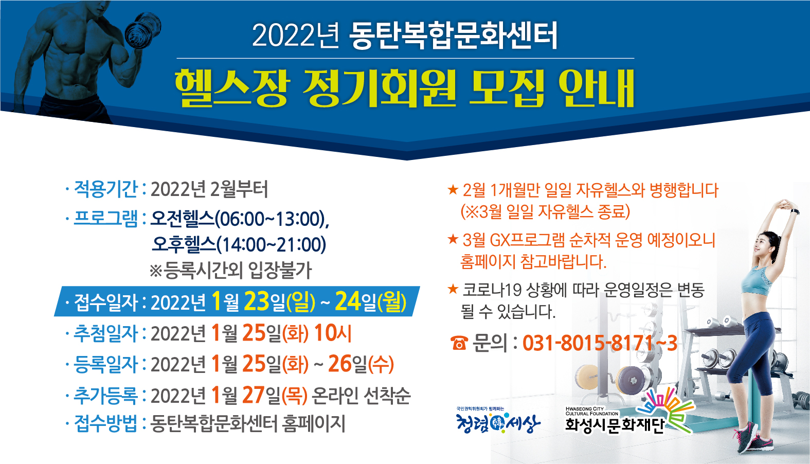 2022년 동탄복합문화센터 헬스장 정기회원 모집안내