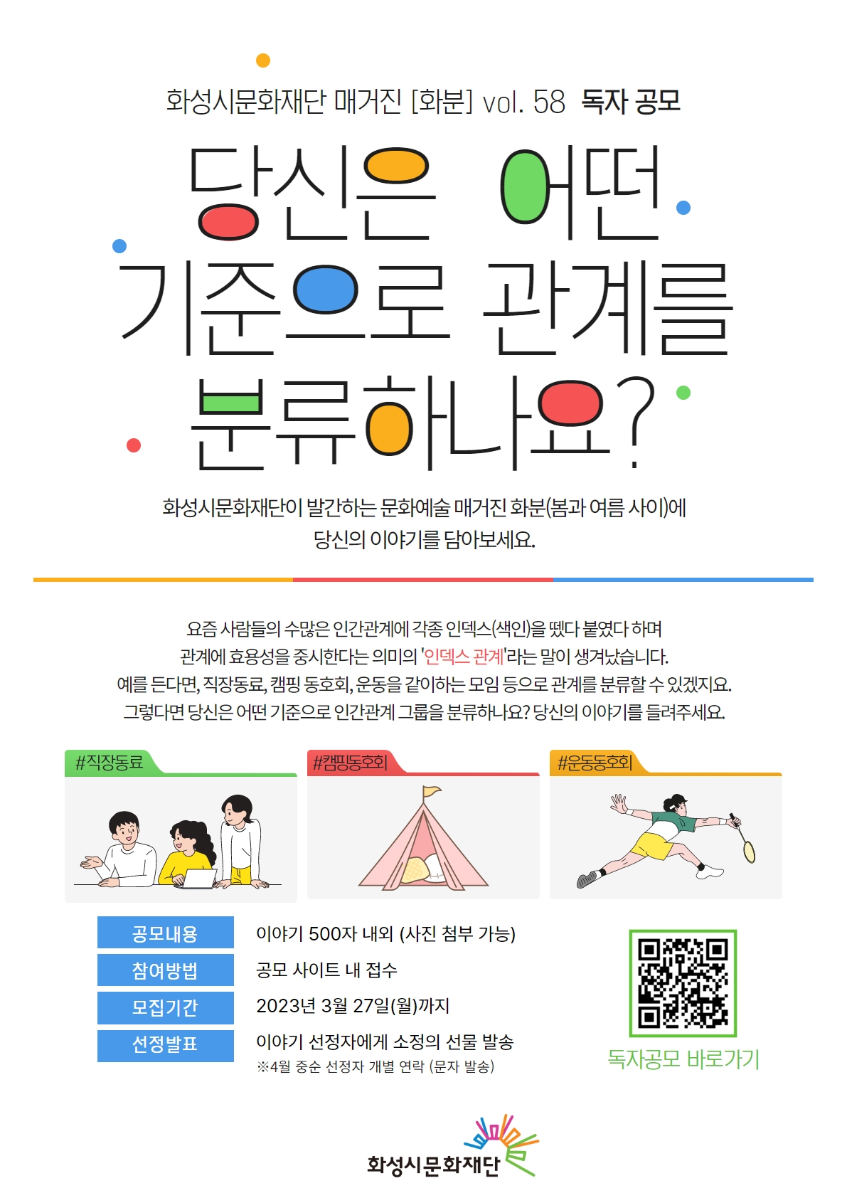 화성시문화재단 문화매거진 [화분 58호] 독자 공모 "당신은 어떤 기준으로 관계를 분류하나요?" (3월 27일까지)
