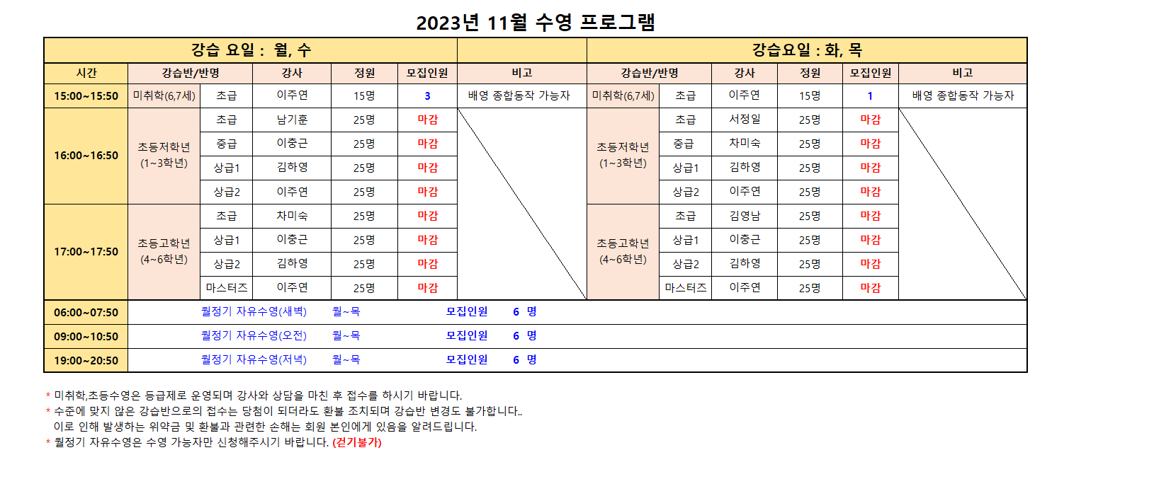 2023년 11월 스포츠 프로그램 추가모집 안내