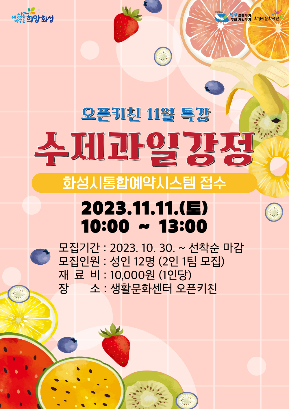 [화성시생활문화센터] 오픈키친 활성화 11월 프로그램 <수제과일강정 만들기> 참여자 모집