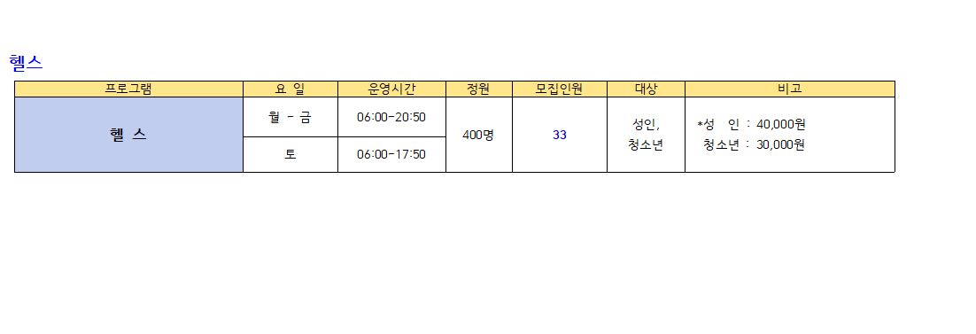 ● 모집프로그램: 수영 프로그램, GX(생활체육), 헬스