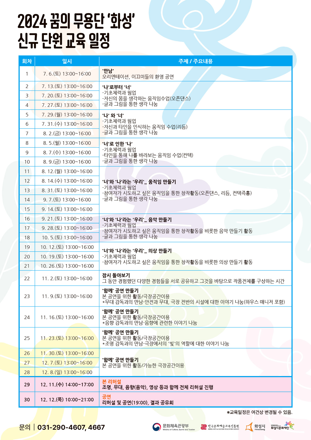 2024 꿈의 무용단 "화성" 신규 단원 모집 작성자 관리자 작성일 2024년 5월 31일 16시 52분 20초 조회 737 꿈의 무용단 '화성' 단원 모집 포스터(QR).jpg [ Size : 471.69KB, Down : 591 ] 미리보기 다운로드 꿈의 무용단 '화성' 단원 모집 포스터(QR) 꿈의 무용단 '화성' 교육일정(시간표).jpg [ Size : 507KB, Down : 605 ] 미리보기 다운로드 꿈의 무용단 '화성' 교육일정(시간표) 참여신청 링크 : https://forms.gle/Cyz1qfBPpwQEY2419 목록보기