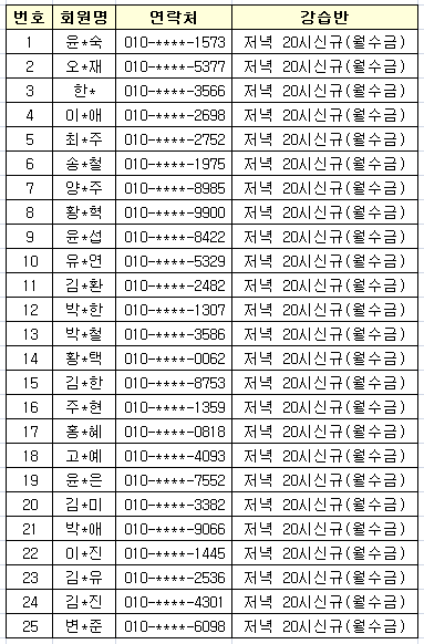 ★ 강습반 : 새벽 06시 성인(월수금), 초등고학년(월수금), 저녁 20시 성인(월수금)