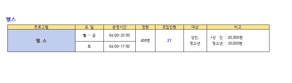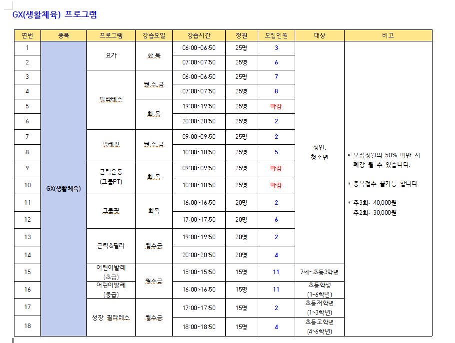 ● 모집프로그램: 수영 프로그램, GX(생활체육), 헬스