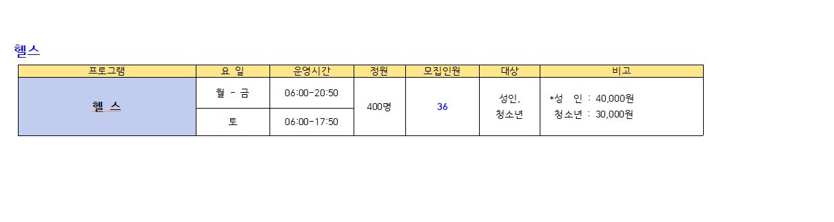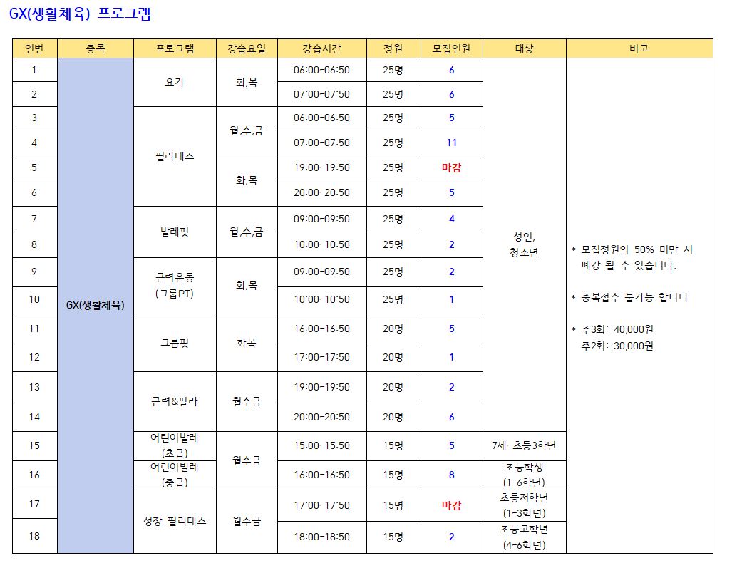 ● 모집프로그램: 수영 프로그램, GX(생활체육), 헬스
