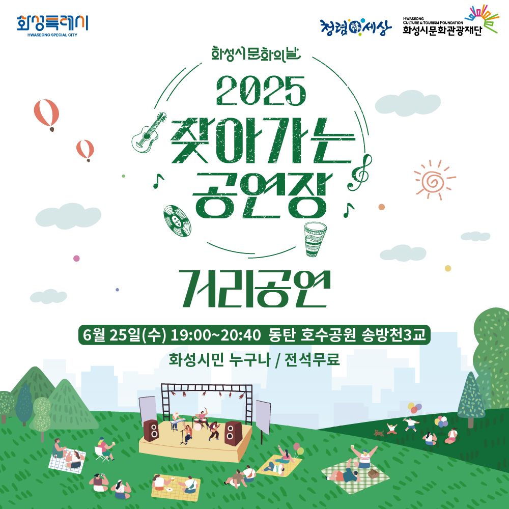 2025 찾아가는 공연장 거리공연 「화성시 문화의 날」 6.25.(수) 19:00 ~ 동탄 호수공원 송방천3교