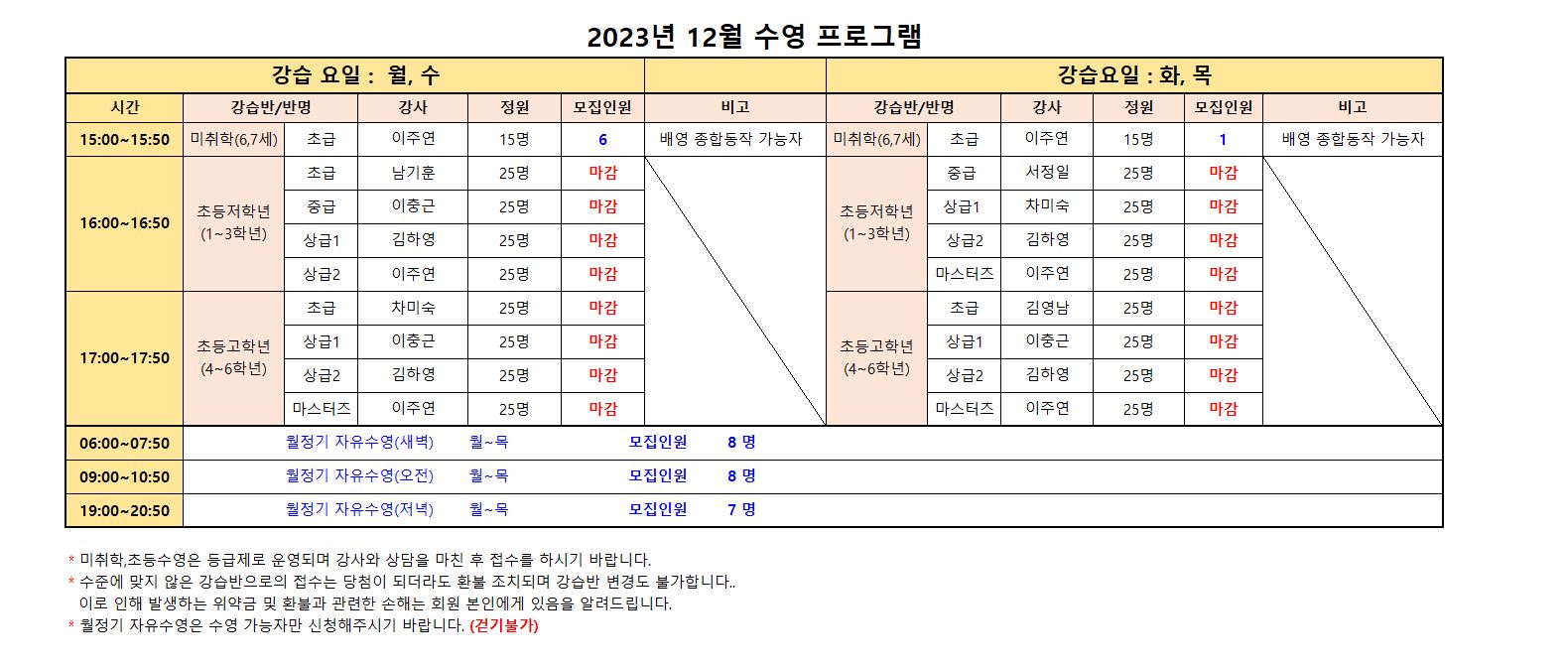 2023년 12월 스포츠 프로그램 추가모집 안내