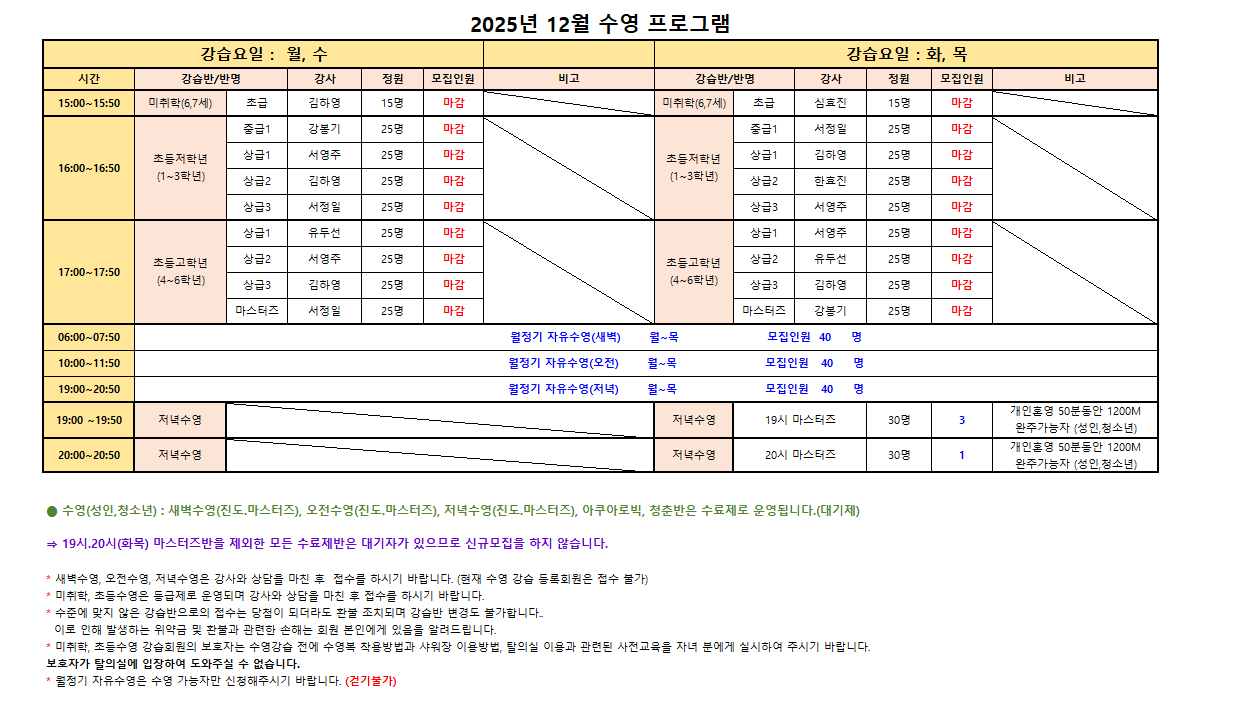 *미취학, 초등수영은 등급제로 운영되며 반드시 강사와 상담을 마친 후 접수를 하시기 바랍니다.