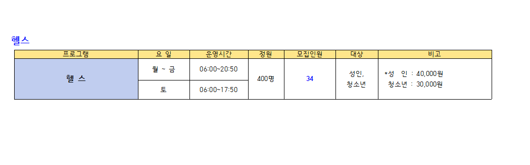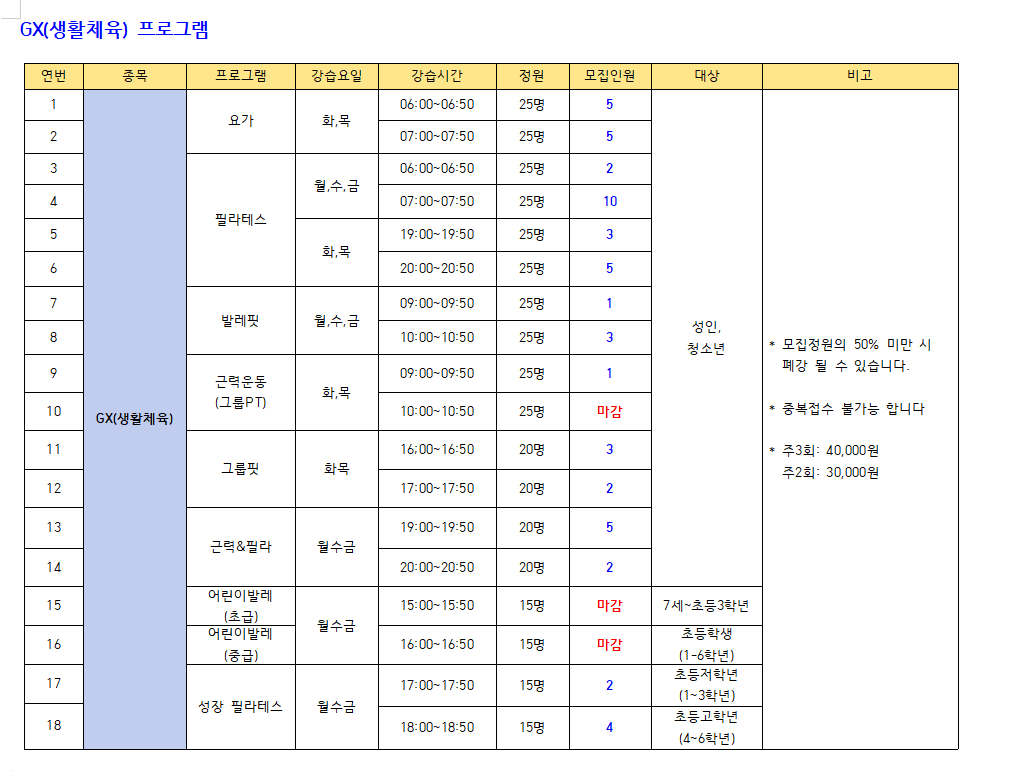 ● 모집프로그램: 수영 프로그램, GX(생활체육), 헬스