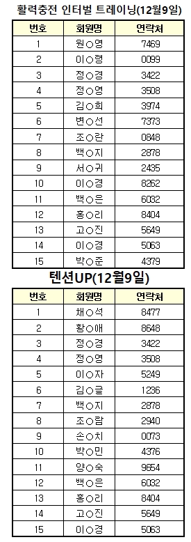12월9일(수) 09:30~10:30 활력 충전 인터벌 트레이닝