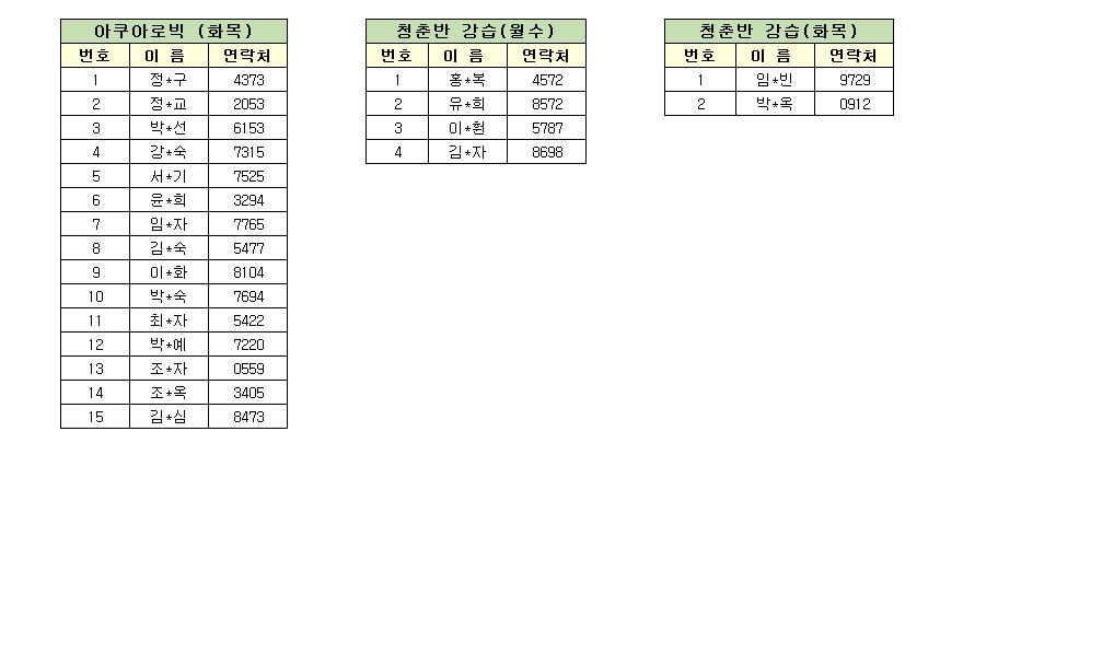 ● 아쿠아로빅(월수)반은 강사 채용이 이루어지지 않아 1월 강습 대기자 등록이 없습니다.