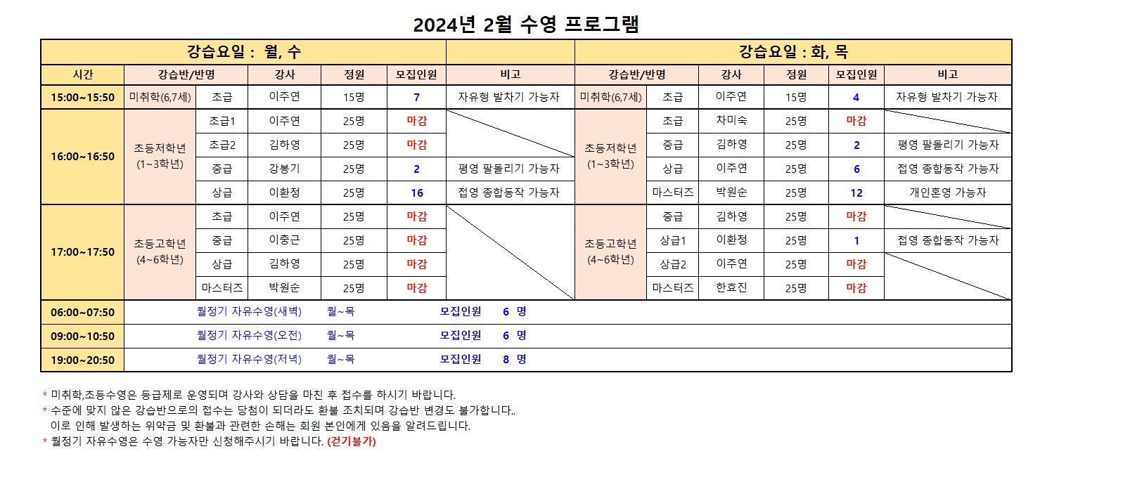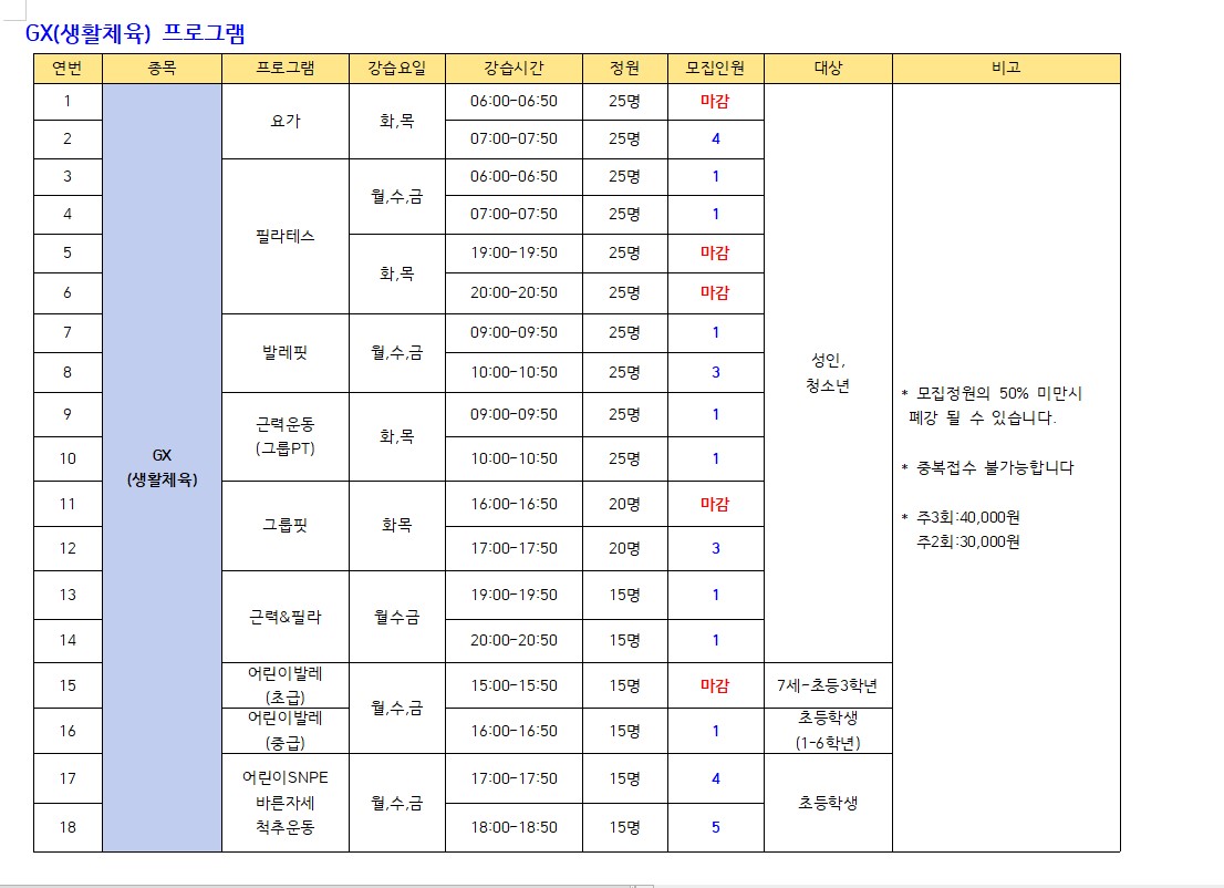 2024년 2월 스포츠 프로그램 추가모집 안내