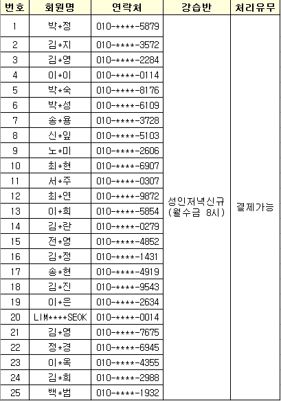 ★ 강습반 : 성인 저녁 신규 (월수금) 20:00