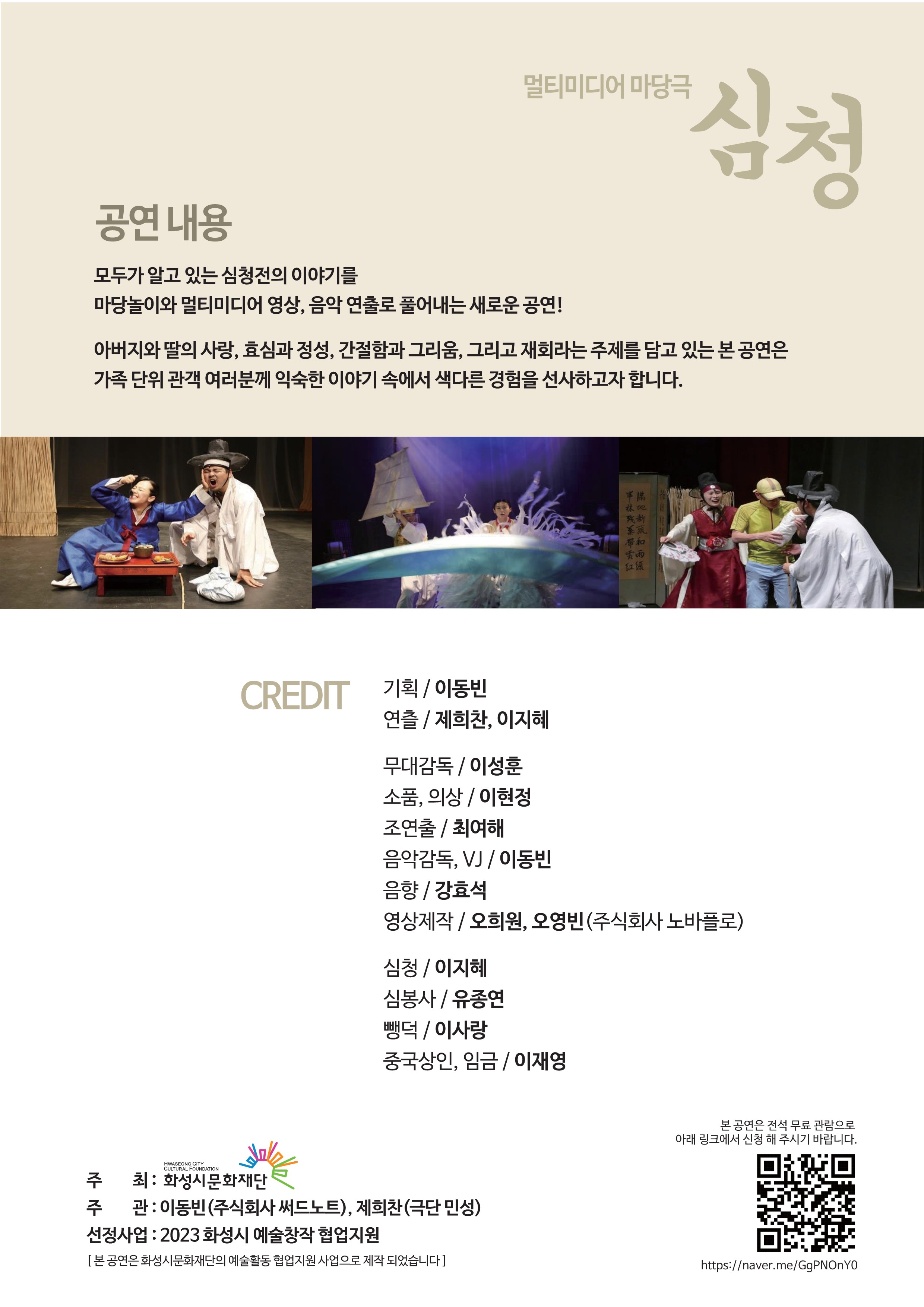 [예술창작 협업지원] 이동빈과 제희찬 - <멀티미디어 마당극 심청>공연 안내
