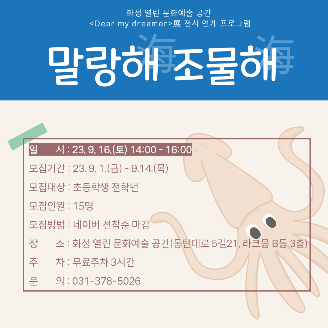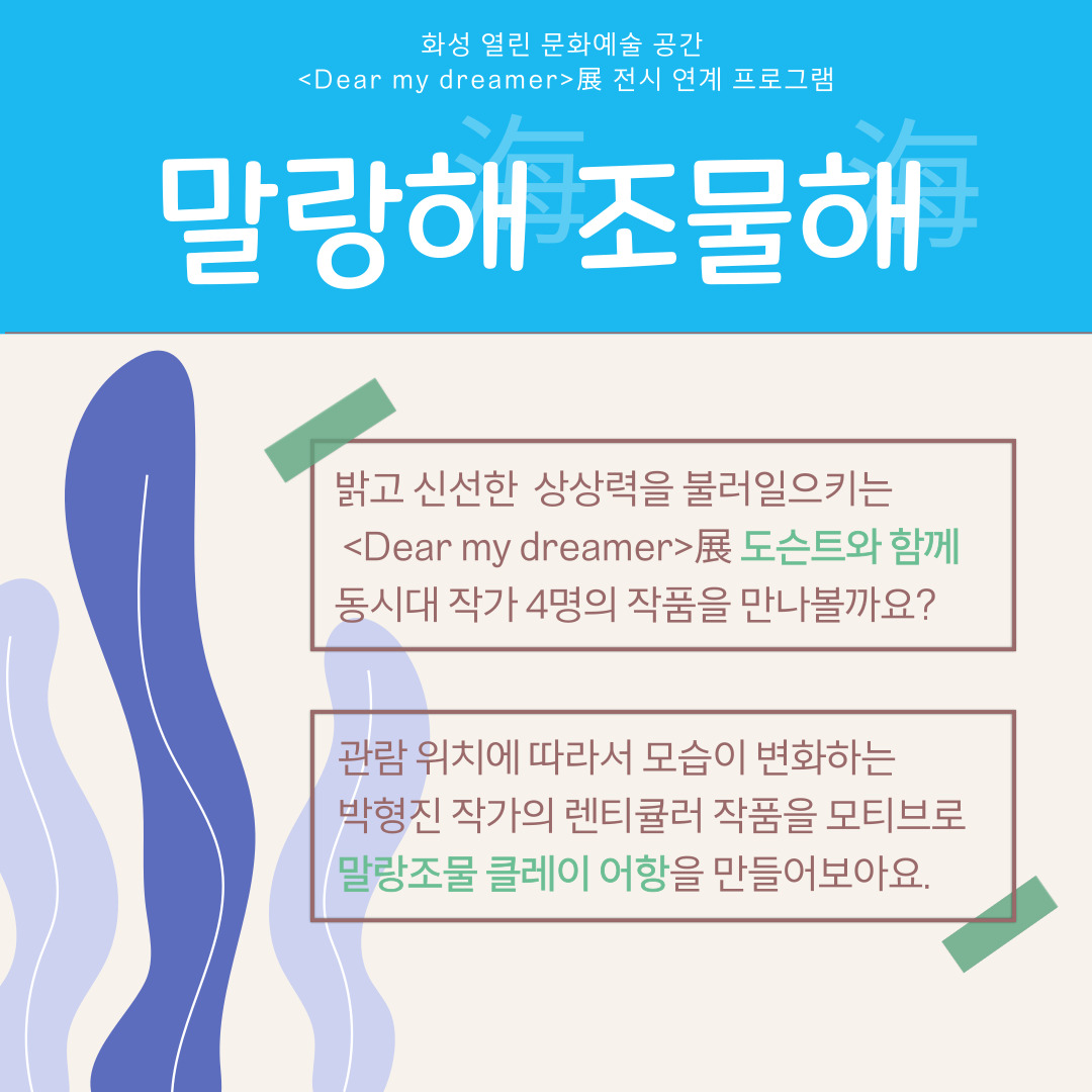 [화성 열린 문화예술 공간] 기획전시<Dear my dreamer> 연계프로그램 '말랑해 조물해'참가자 모집