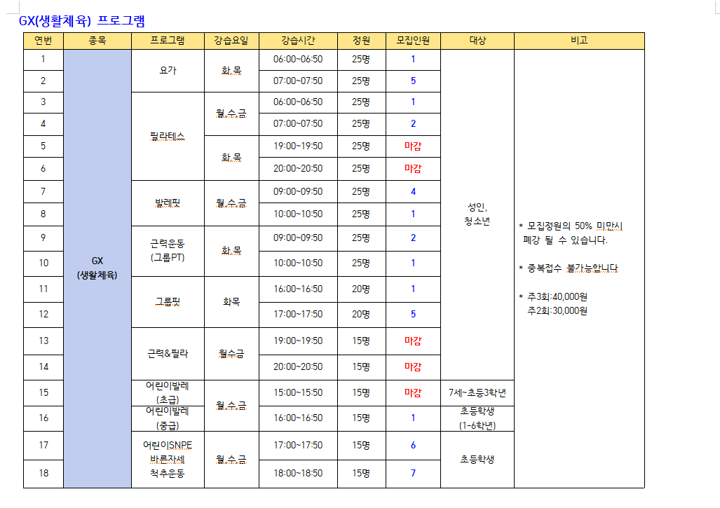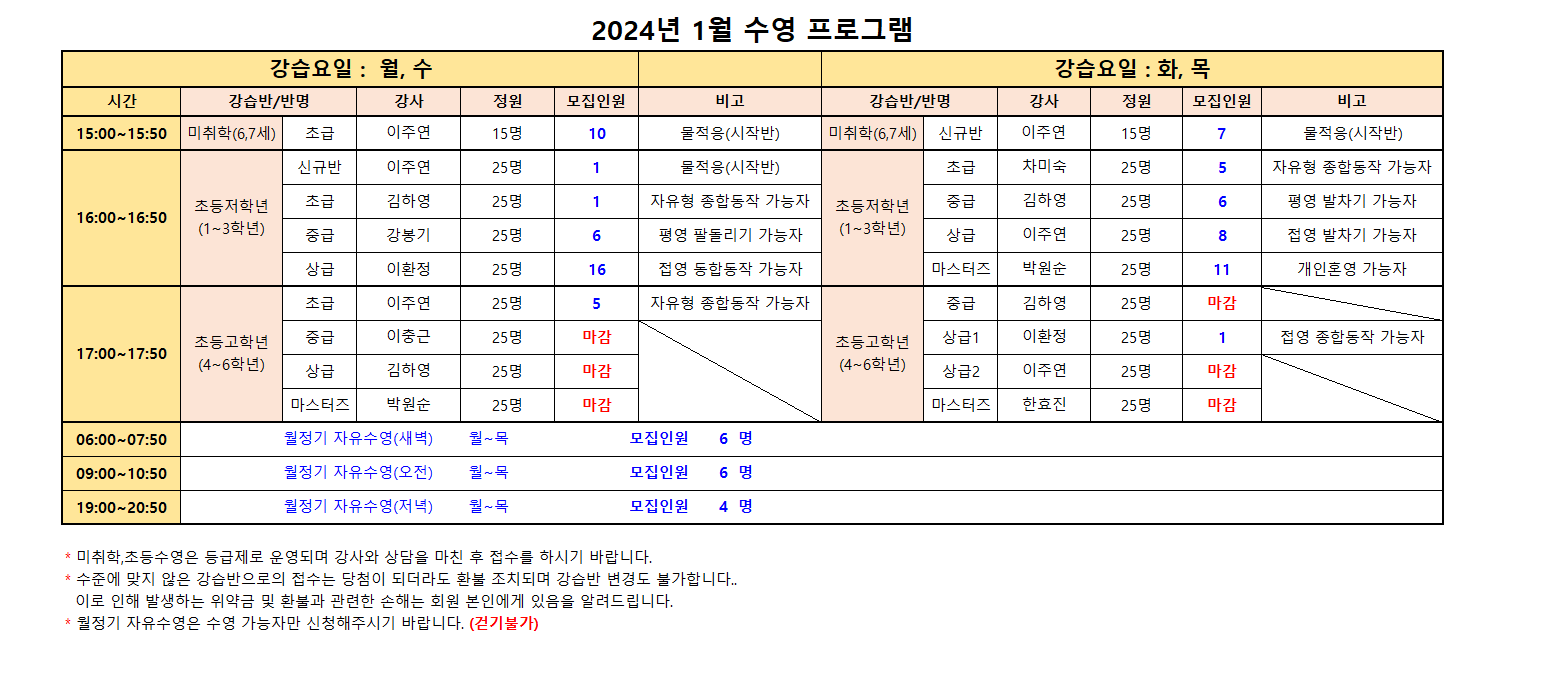 2024년 1월 스포츠 프로그램 추가모집 안내