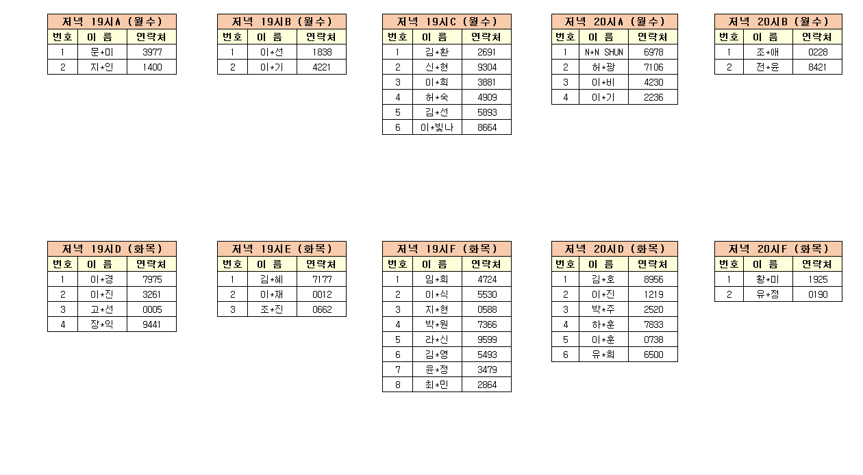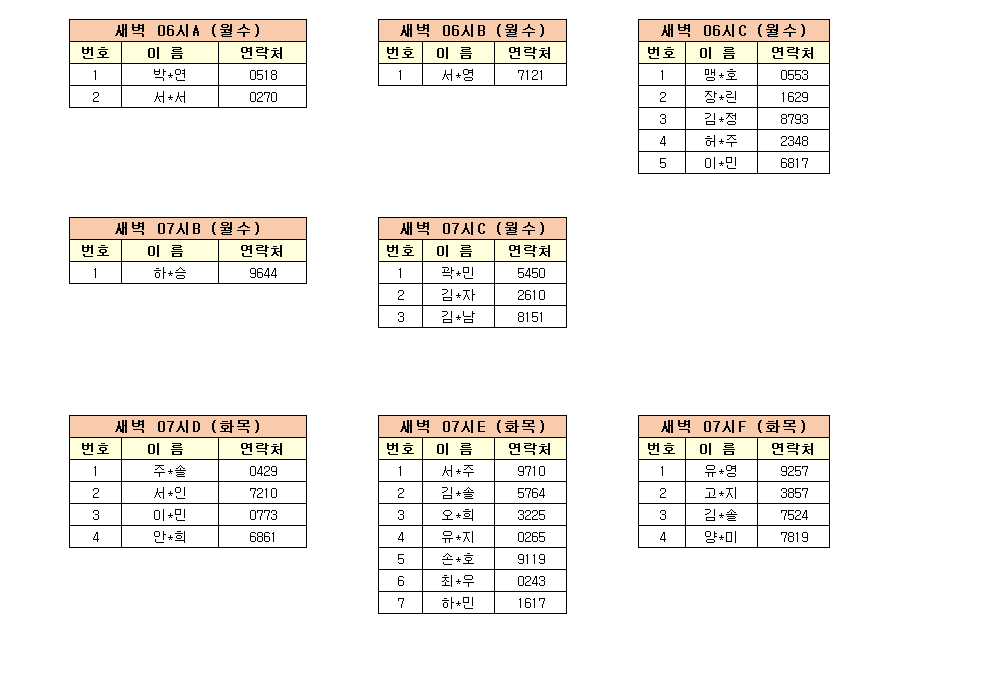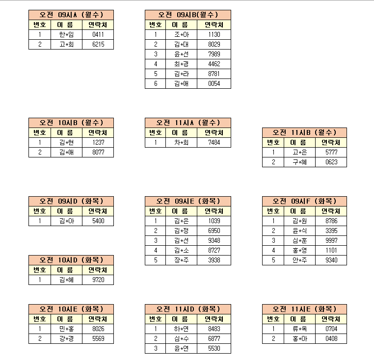 -강습반명, 성명, 전화번호 뒷자리, 강습요일을 확인하시고 강습에 참여해 주시기 바랍니다.