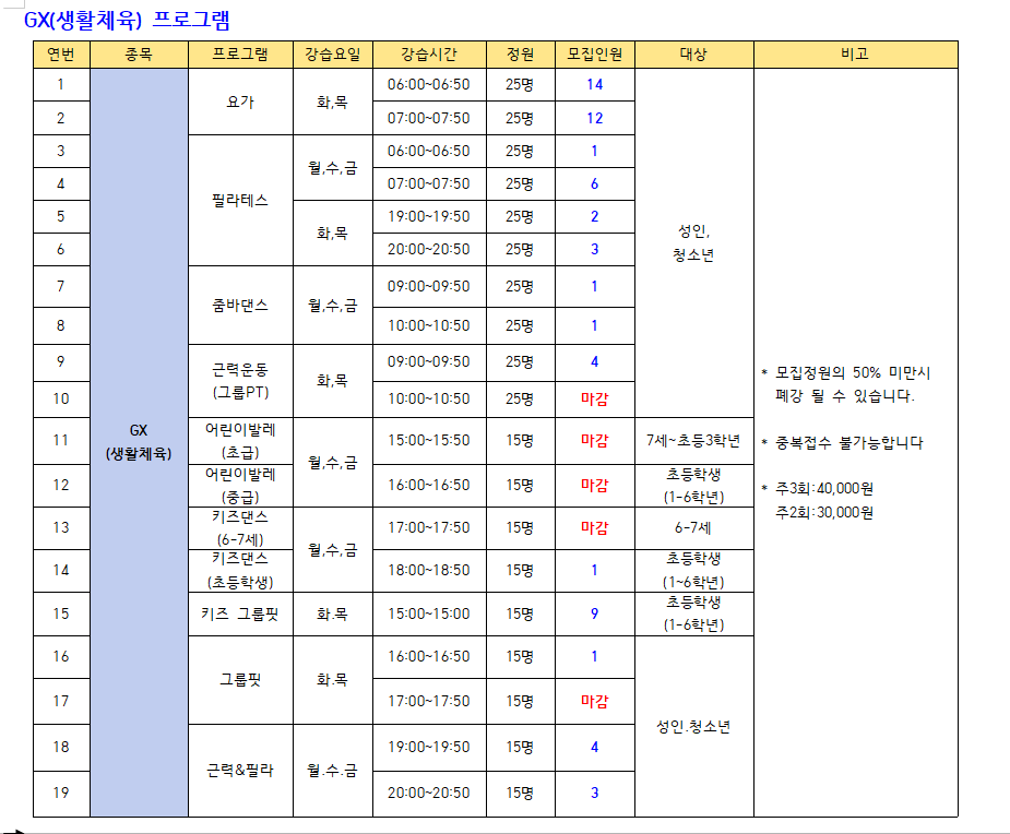 2023년 3월 스포츠 프로그램 추가모집 안내