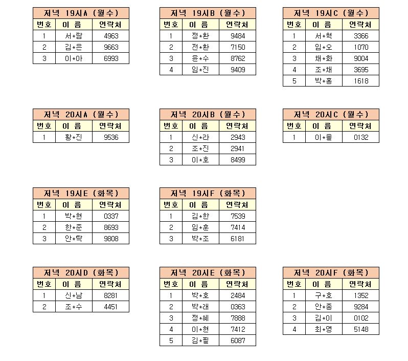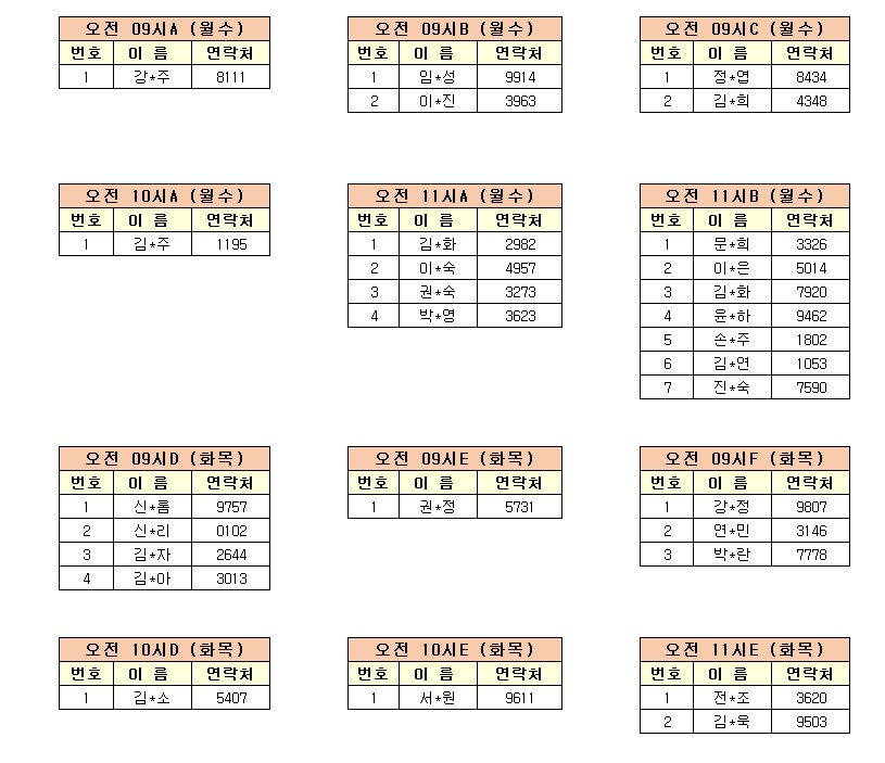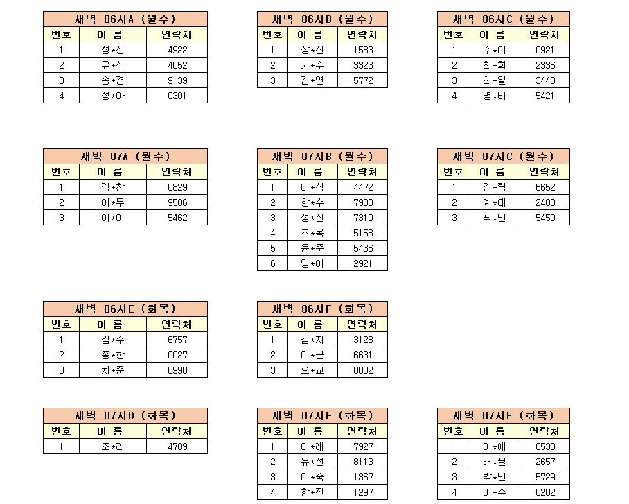 -강습반명, 성명, 전화번호 뒷자리, 강습요일을 확인하시고 강습에 참여해 주시기 바랍니다.