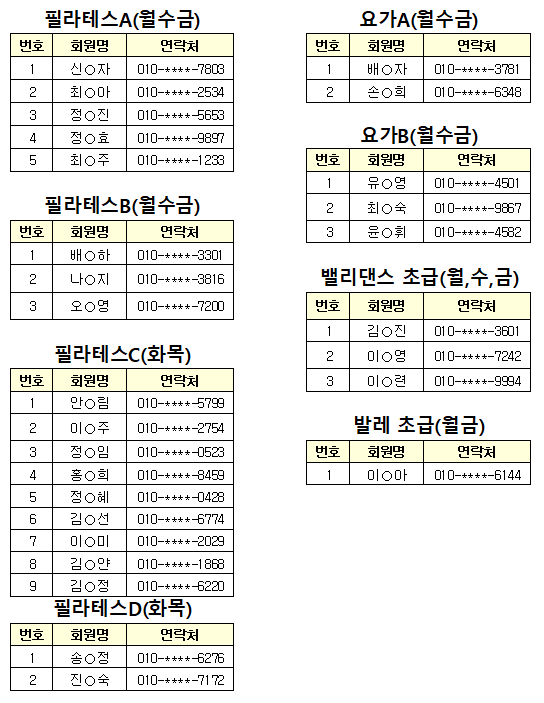 ★ 강습반 : 에어로빅 외 16종목