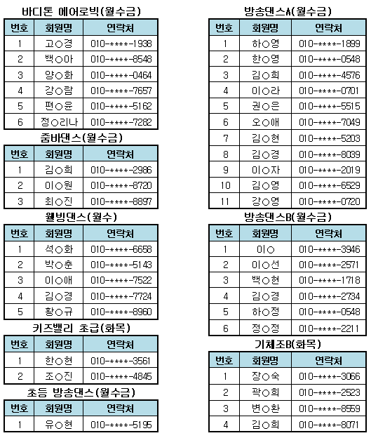 [스포츠] 동탄복합문화센터 2019년 8월 스포츠 프로그램 추첨 결과