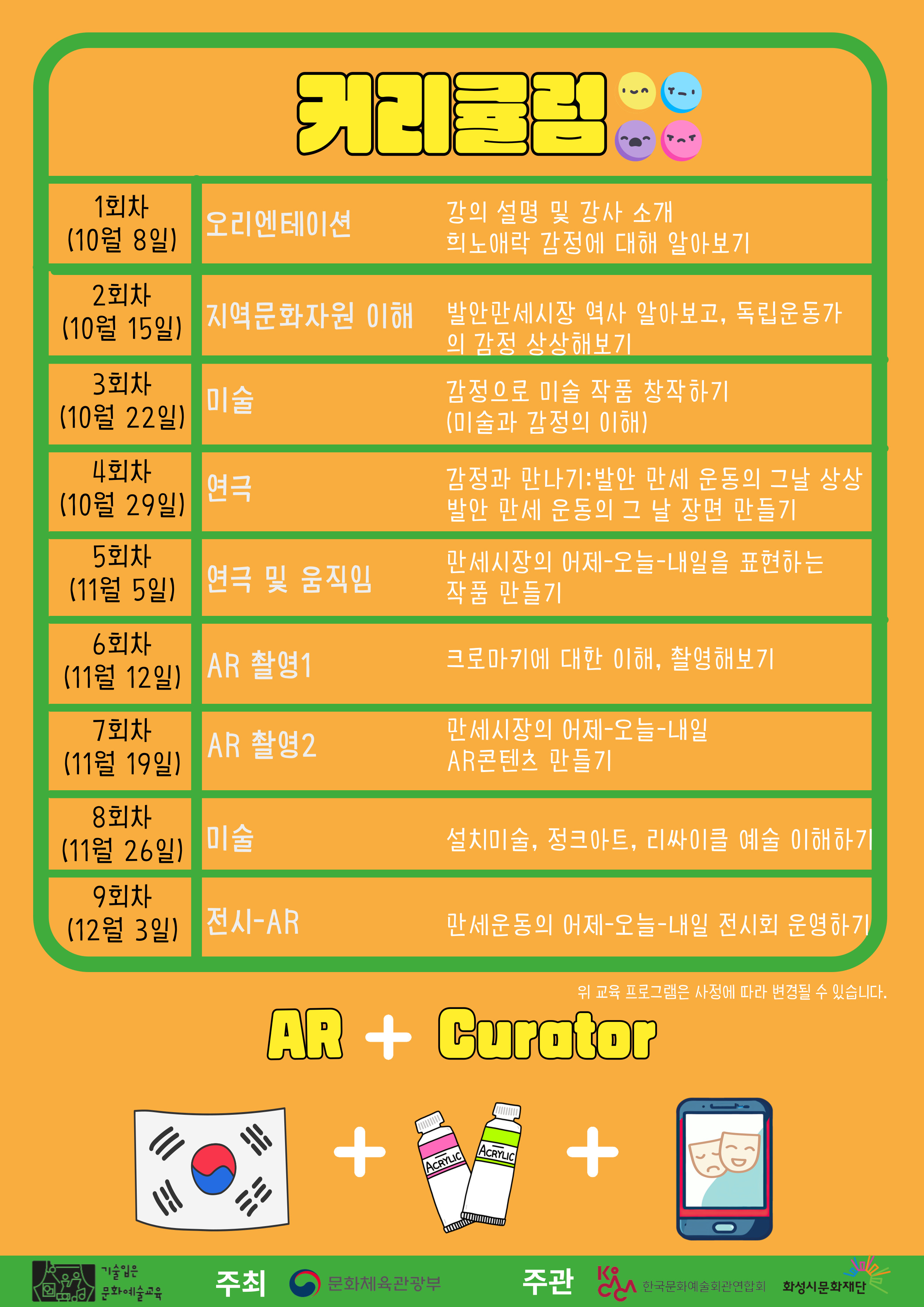 화성의 역사(문화)자원을 바탕으로 AR기술, 연극, 미술을 포함하는 융복합형 교육입니다:-)
