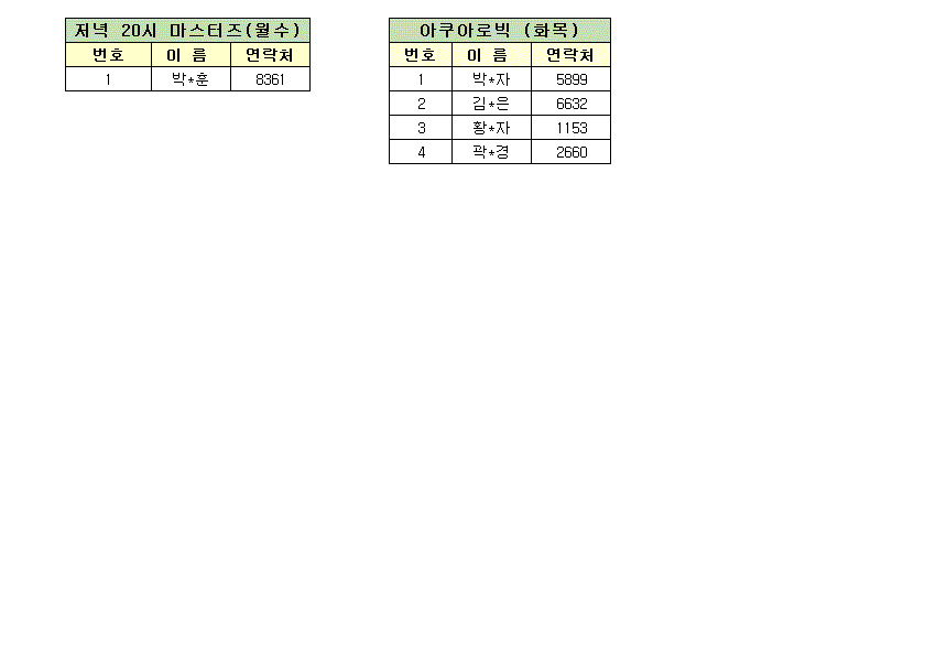 ※아쿠아로빅(월수)반은 강사 채용이 이루어지지 않아 12월 강습 대기자 등록이 없습니다.