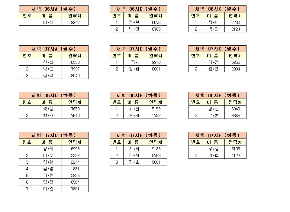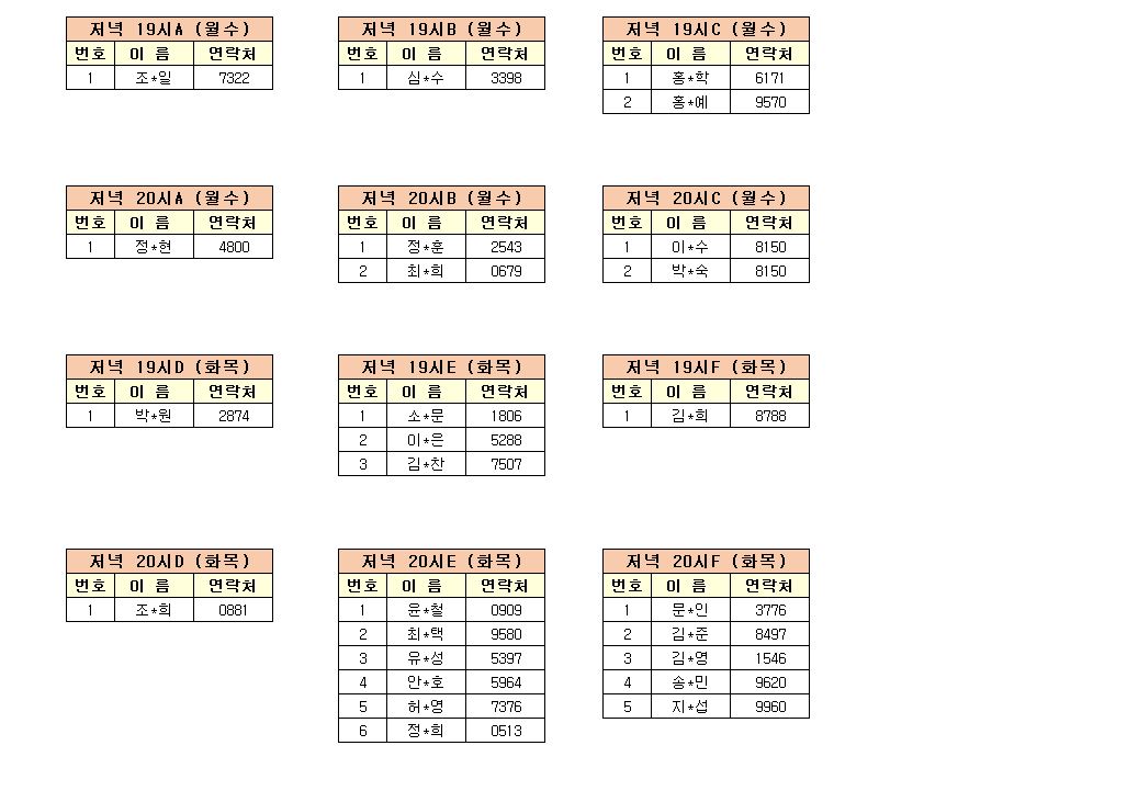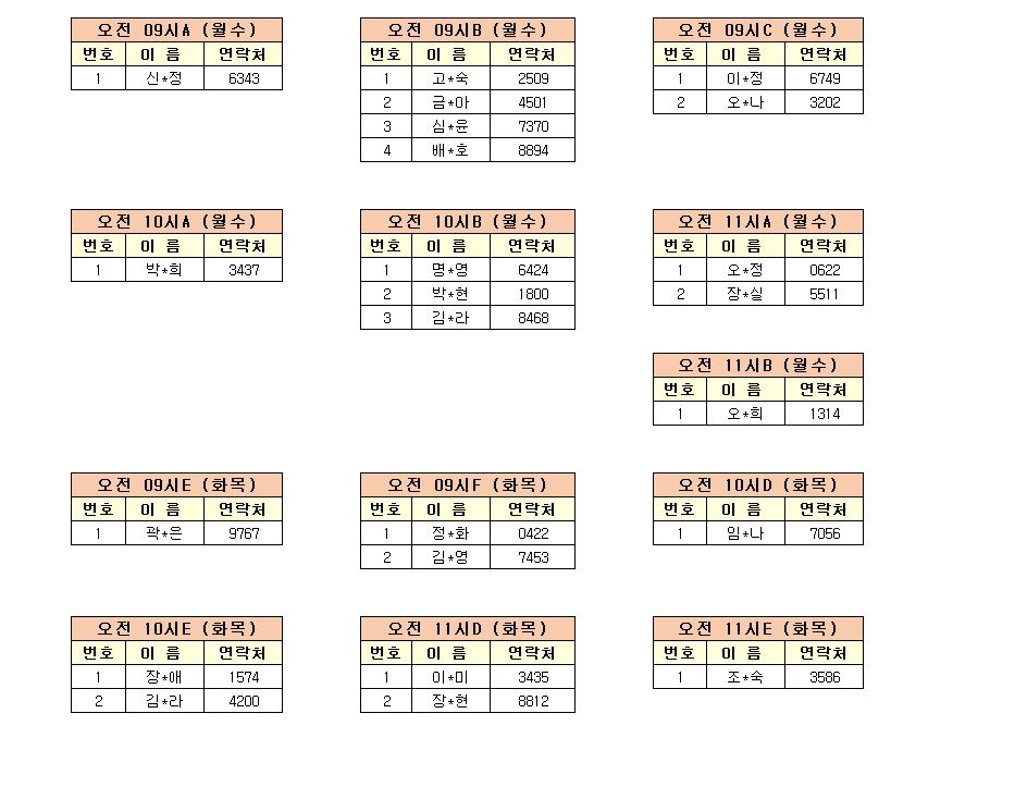 -강습반명, 성명, 전화번호 뒷자리, 강습요일을 확인하시고 강습에 참여해 주시기 바랍니다.