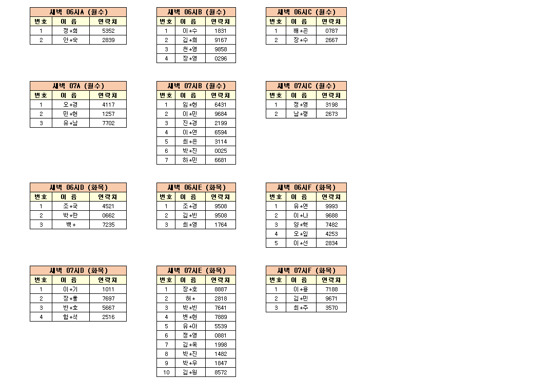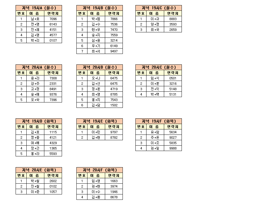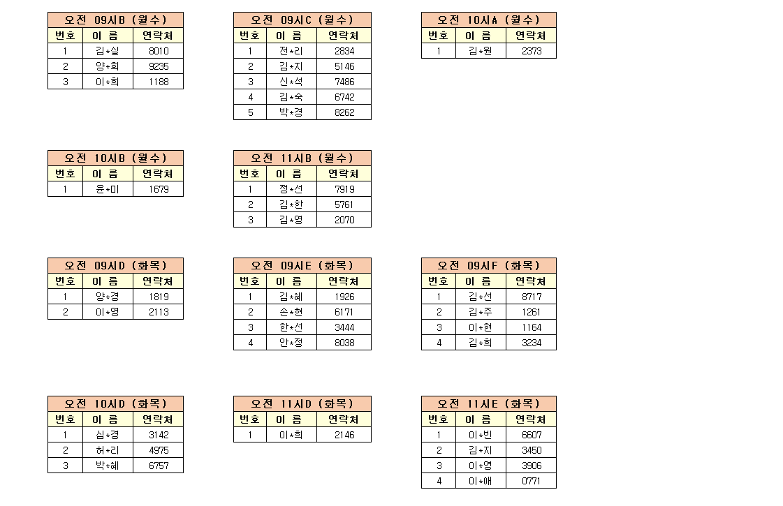 - 강습반명, 성명, 전화번호 뒷자리, 강습요일을 확인하시고 강습에 참여해 주시기 바랍니다.