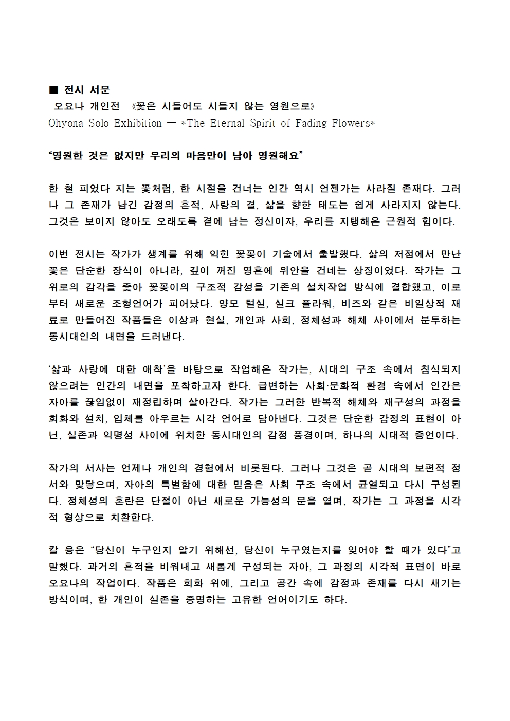 - 행사명: 오요나 개인전 꽃은 시들어도 시들지 않는 영원으로