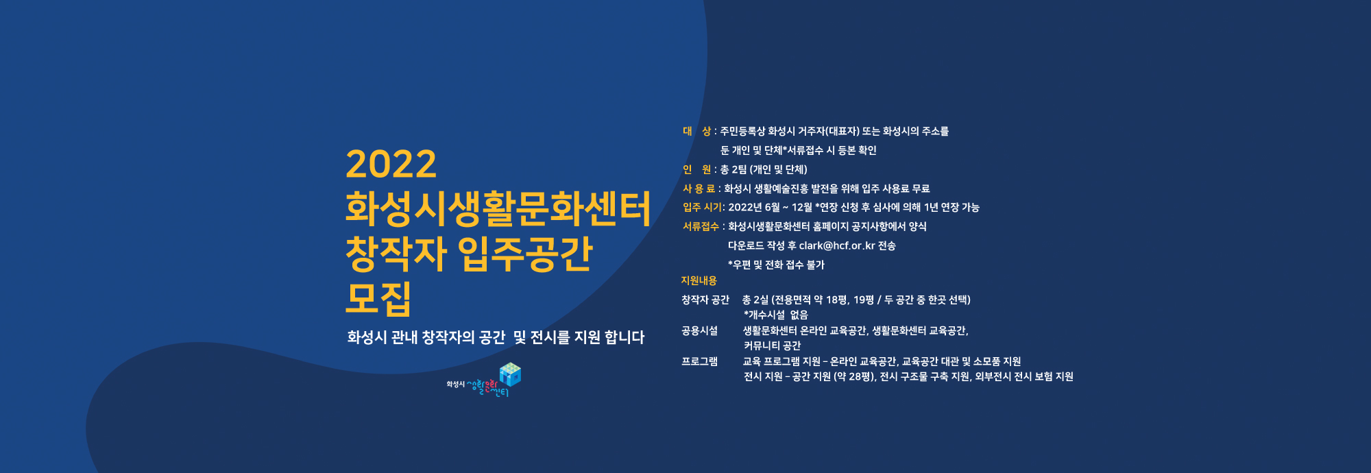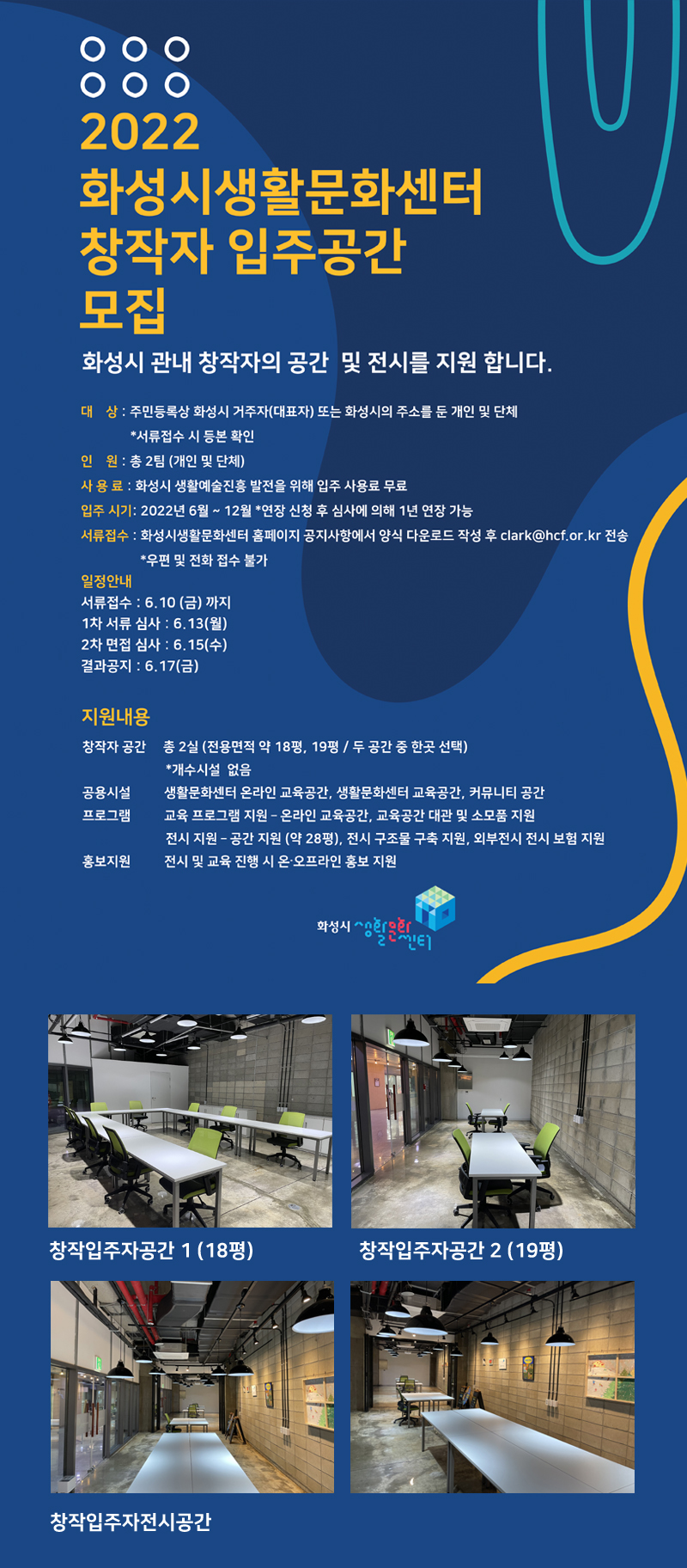 2022 화성시생활문화센터 『창작자 입주공간』 신청자 모집안내